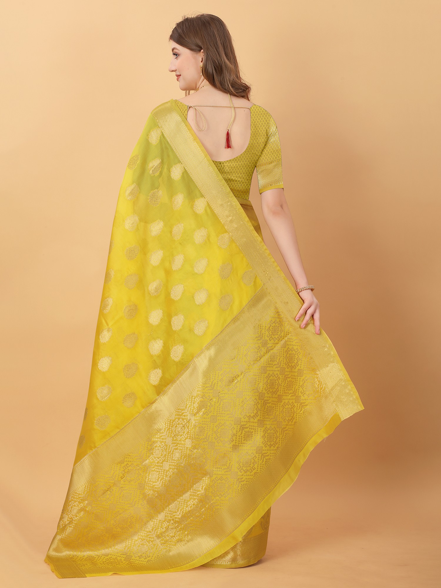 Brocaded Banarasi Silk Floral Butta Saree with Chakra Pattern Wide Border
