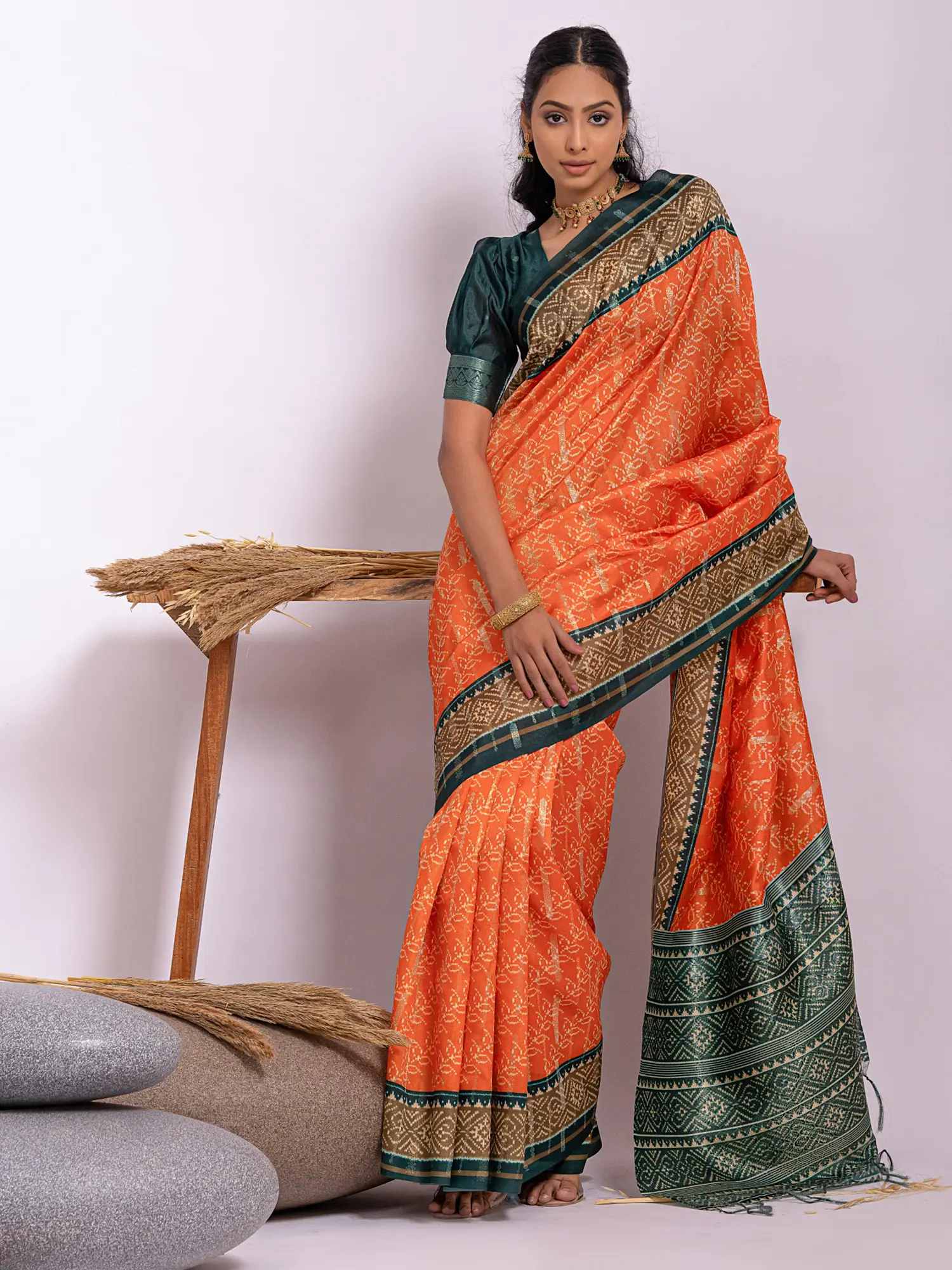 Discover the allure of tradition and craftsmanship with this exquisite Soft Tussar Silk saree. Woven from the finest tussar silk, renowned for its natural sheen and soft, luxurious drape, this saree promises an unparalleled wearing experience. The rich, deep green hue serves as a captivating canvas for the intricate ethnic motifs that adorn its entirety. These traditional patterns, rendered in a delicate lighter shade, create a subtle yet striking visual appeal, showcasing the artistry of skilled weavers.