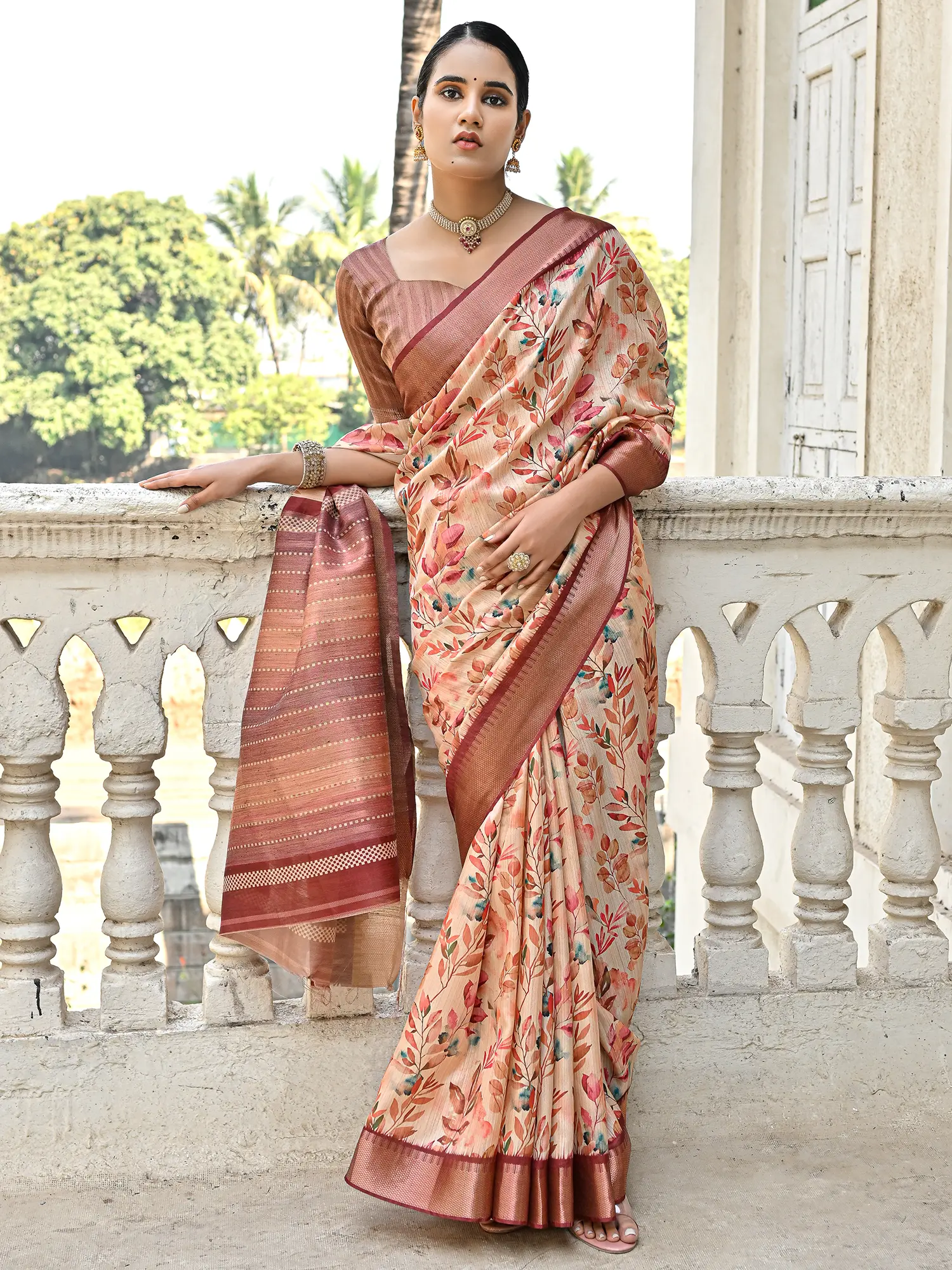 Art Silk Saree with Golden Stripes and Traditional Paisley Motifs All Over