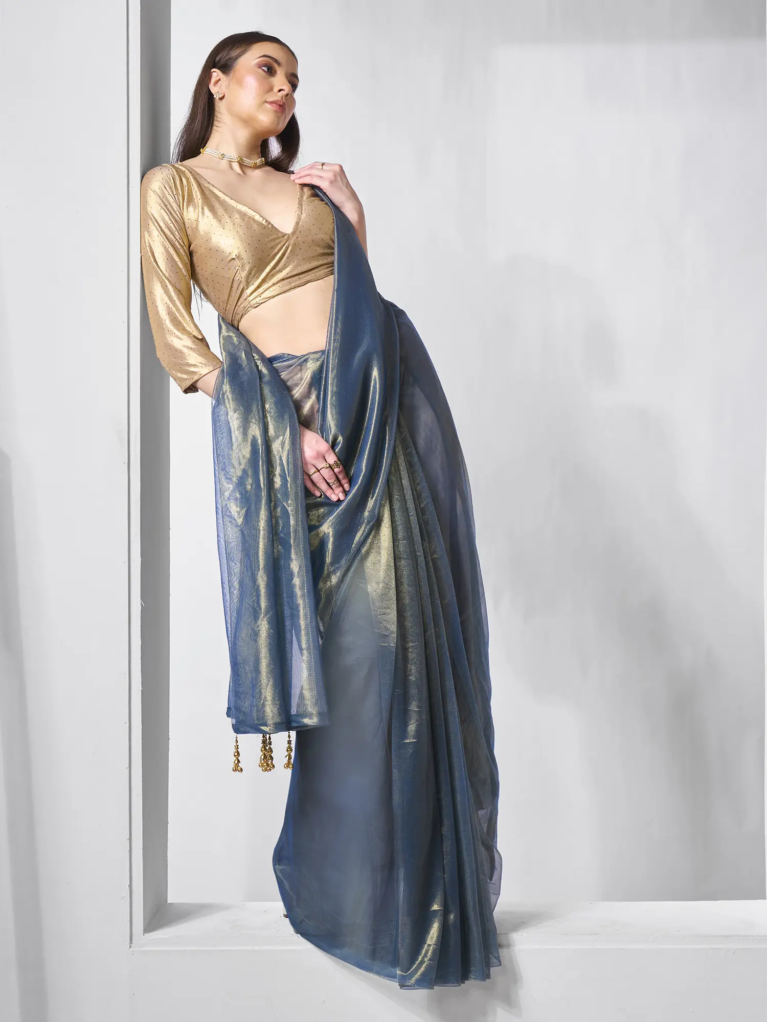 Silk Sequins And Embroidery Work Border Party Wear Solid Saree With Blouse