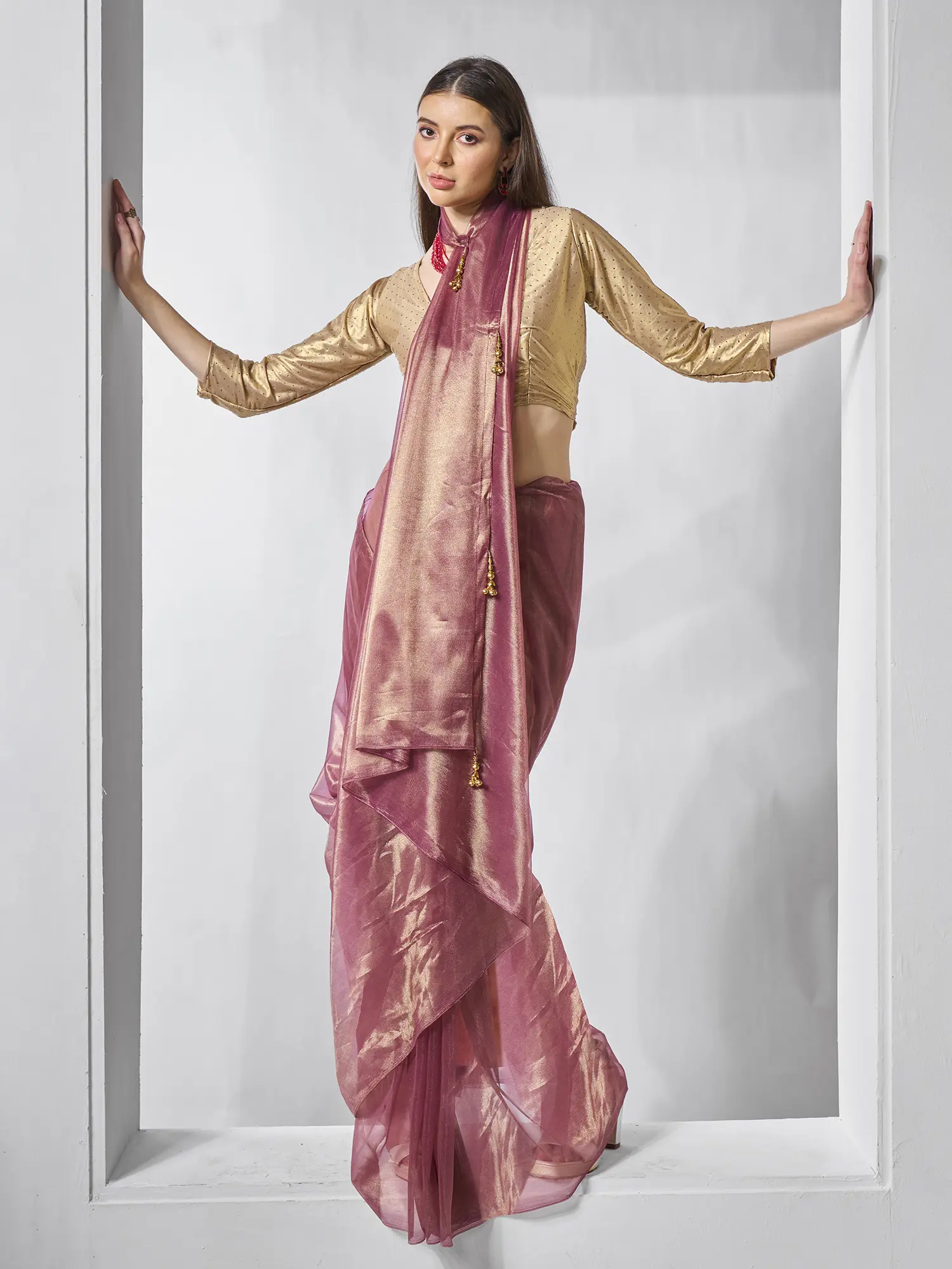 Opera-Mauve Satin Silk Hand Embroidery Work Border Solid Attractive Saree