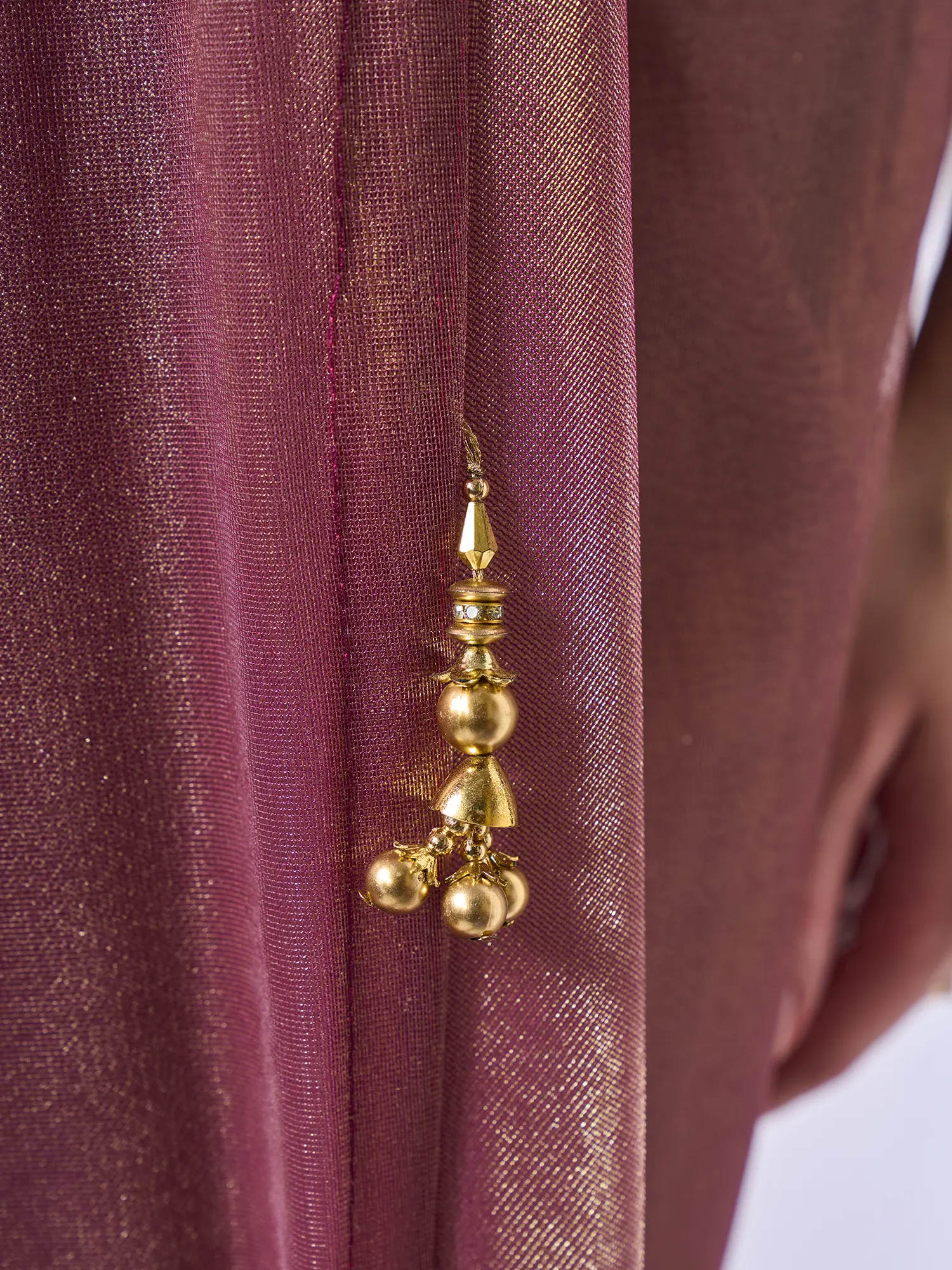 Venetian-Red Solid Lace Work Satin Jimmy Choo Party Wear Saree With Designer Matching Blouse