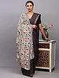 Dark-Blue Digital Printed Floral Pallu Kani Polyester Saree with Shawl