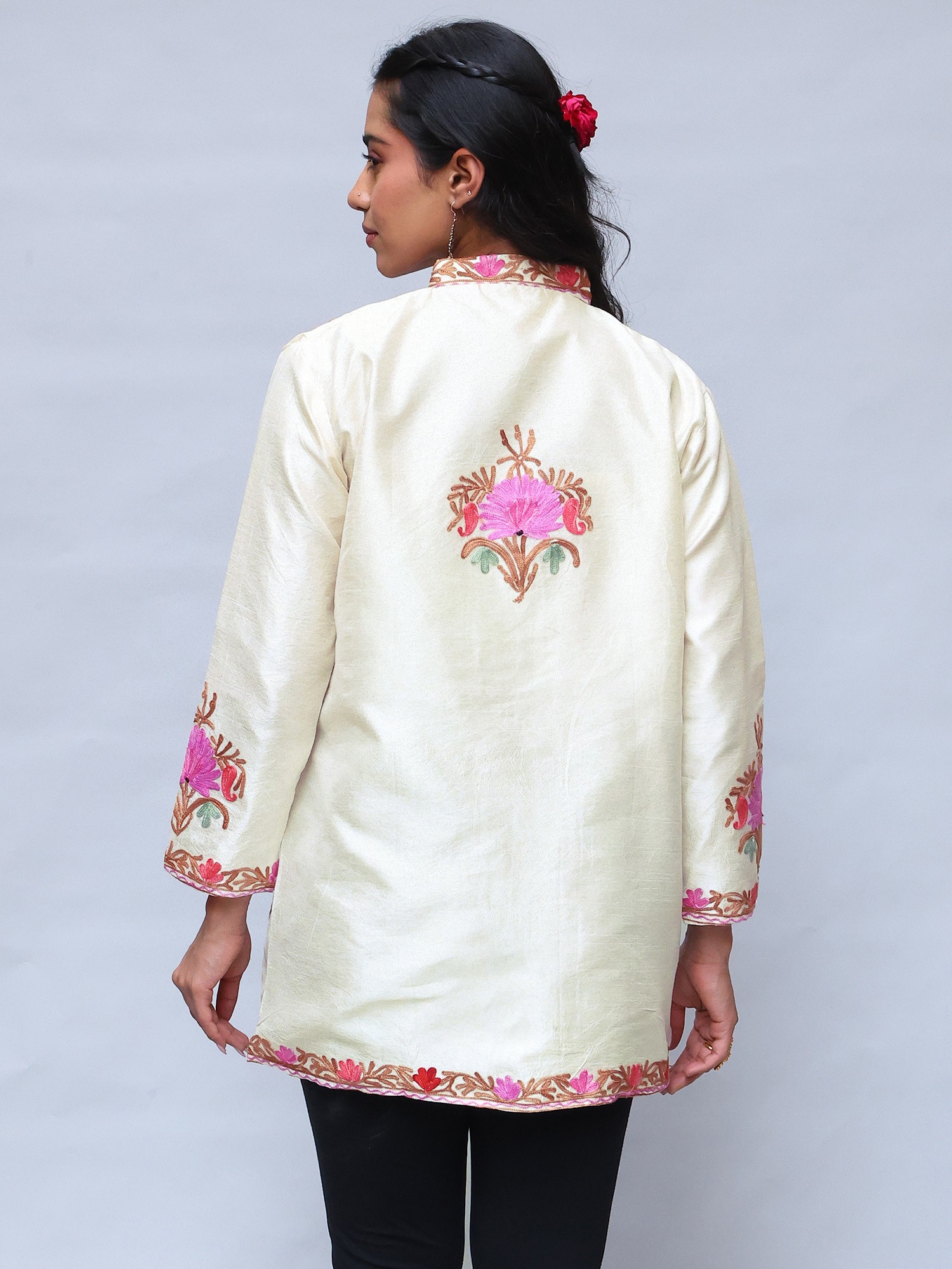 Kashmiri Short Jacket with Paisleys Hand Aari Embroidery on Border