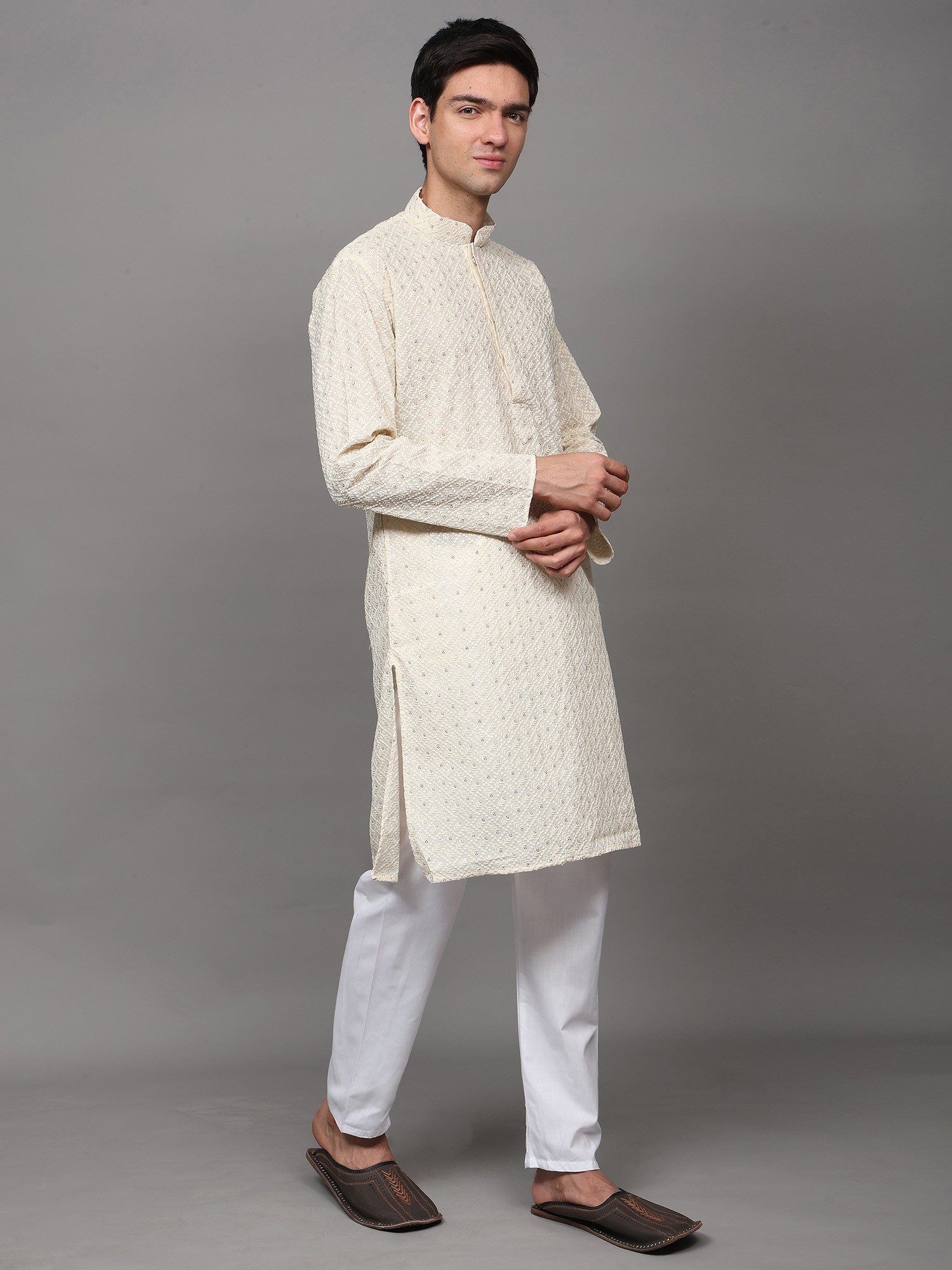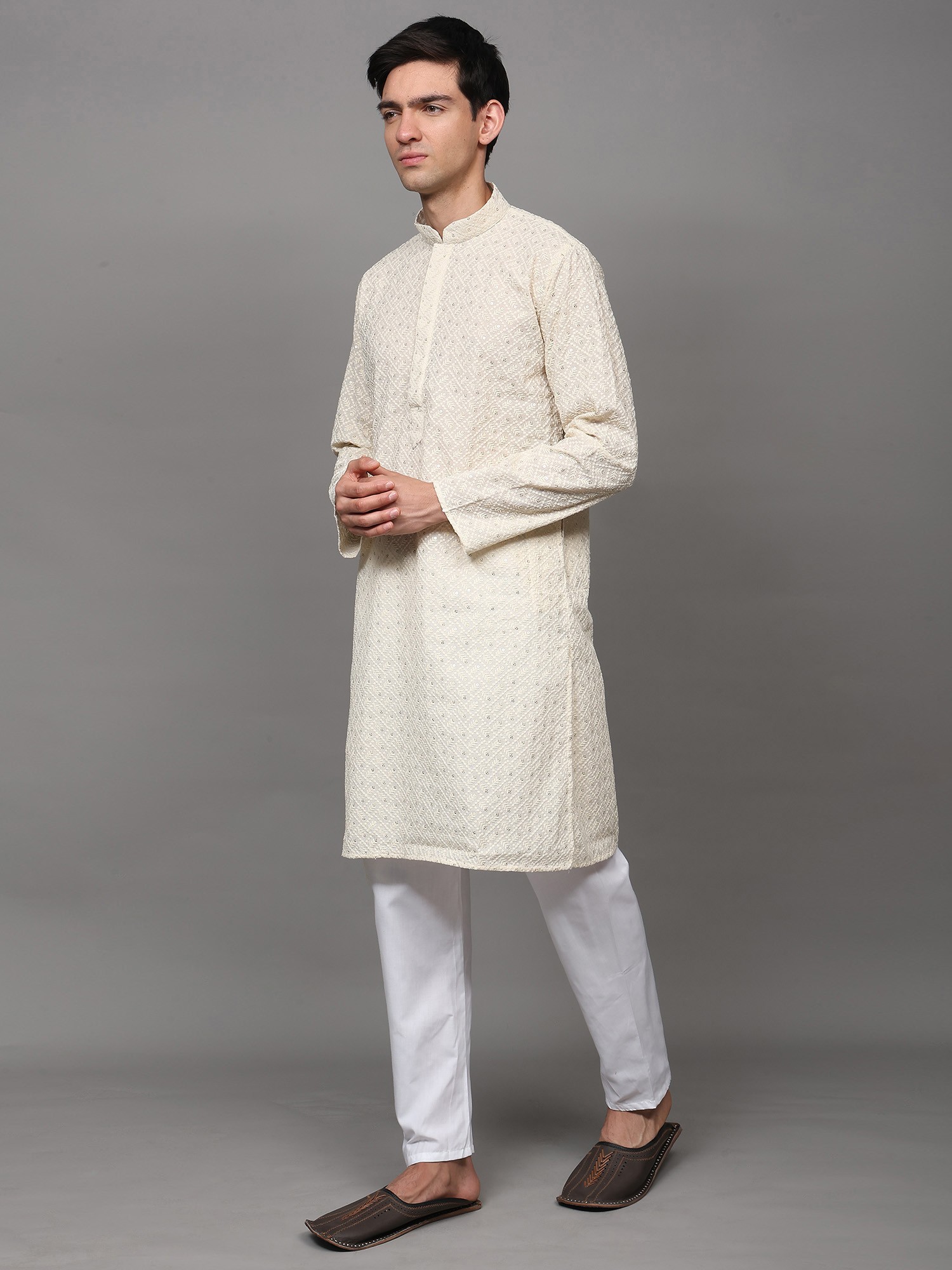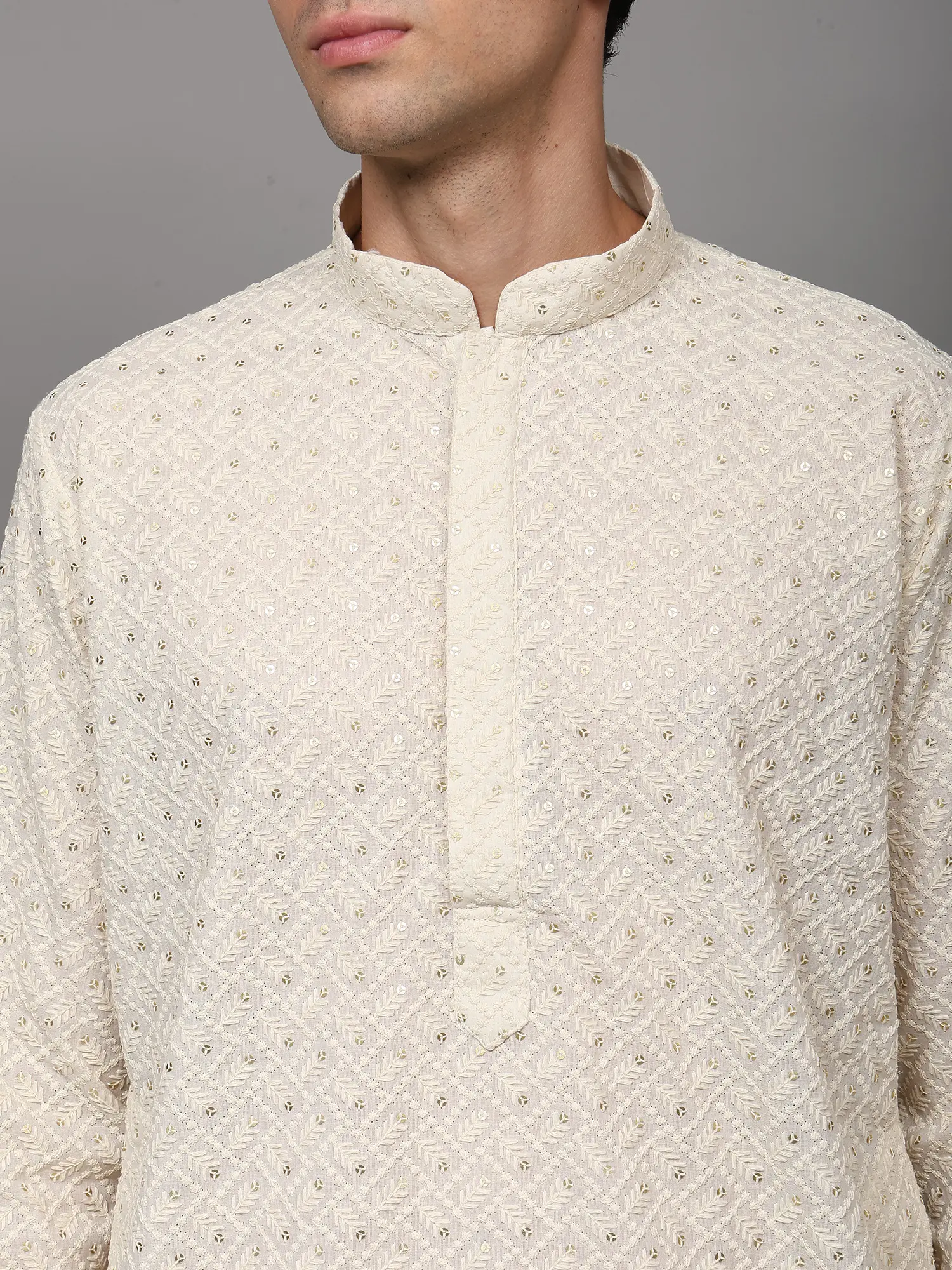 Basil-Green Wedding Kurta Pajama with Embroidered Beads