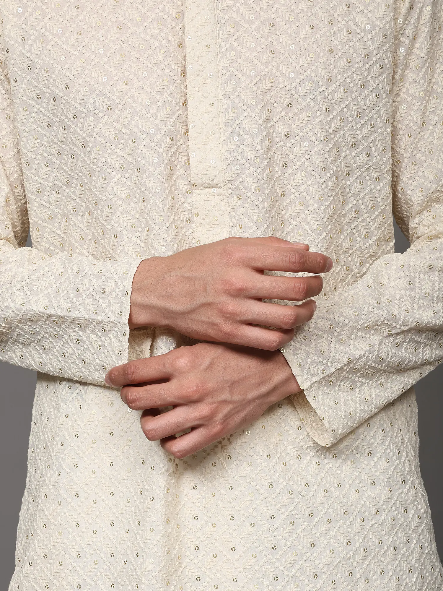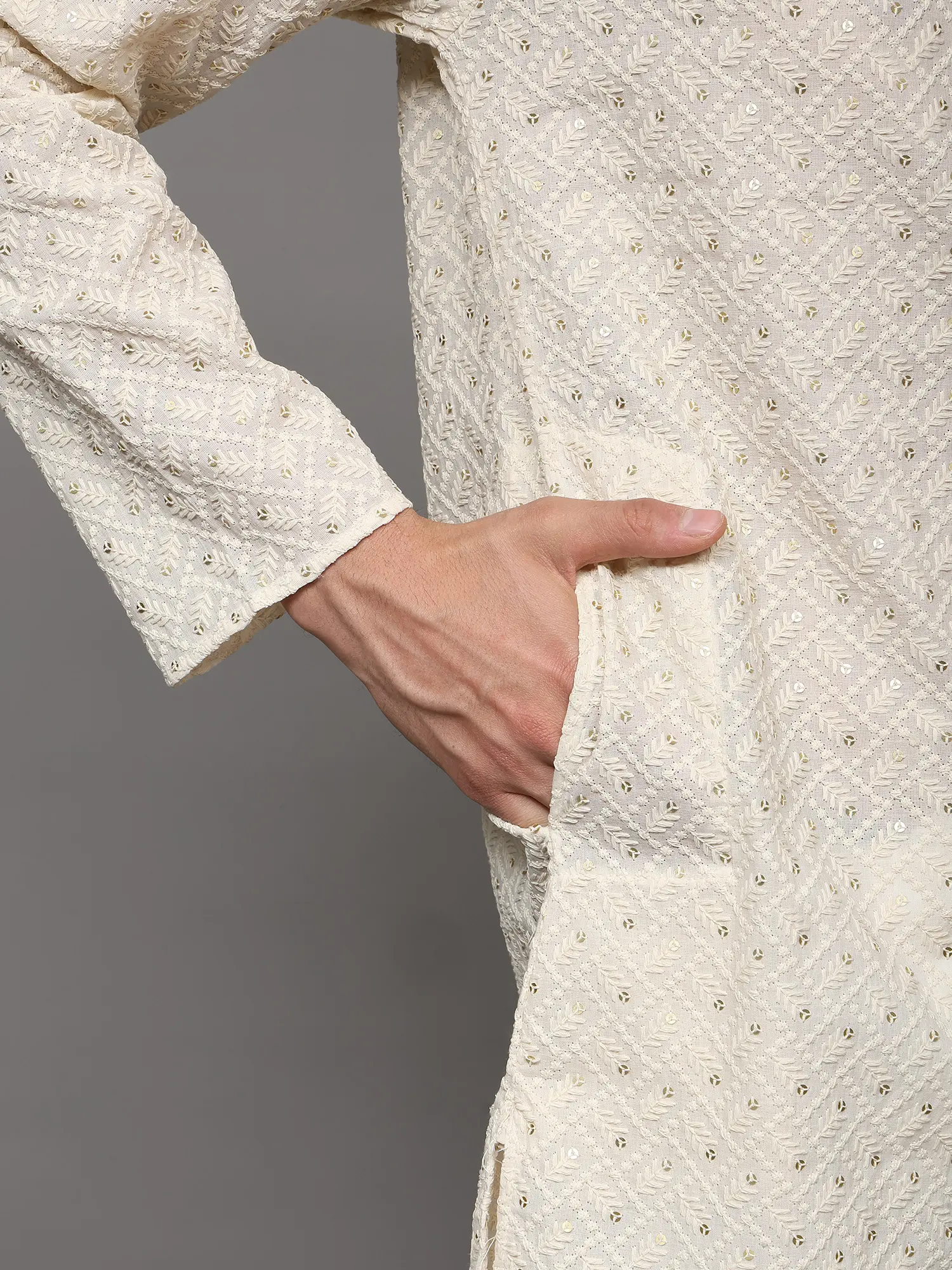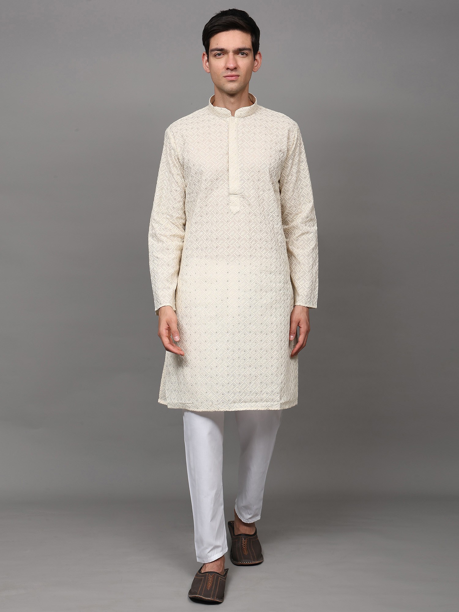 Basil-Green Wedding Kurta Pajama with Embroidered Beads