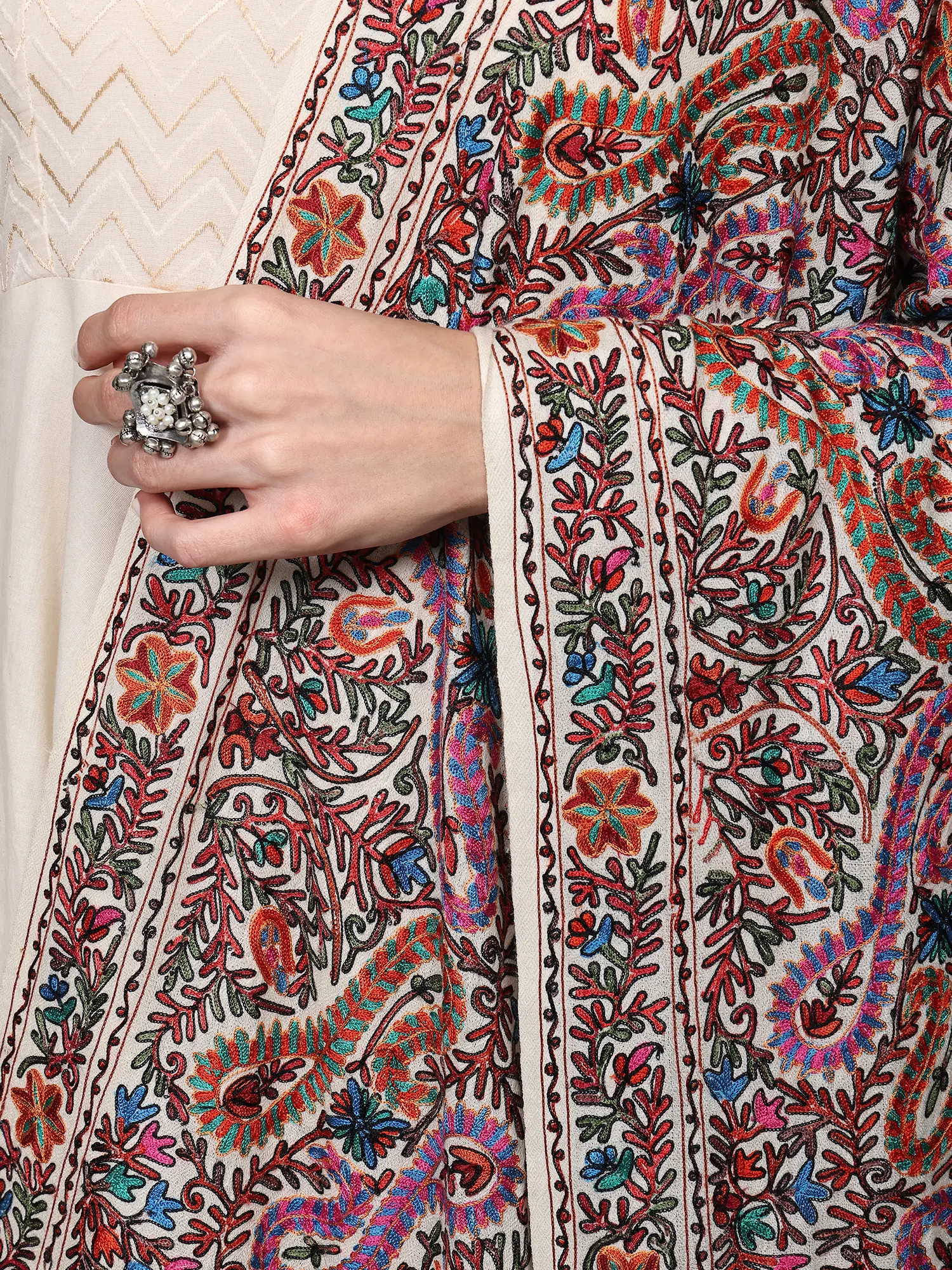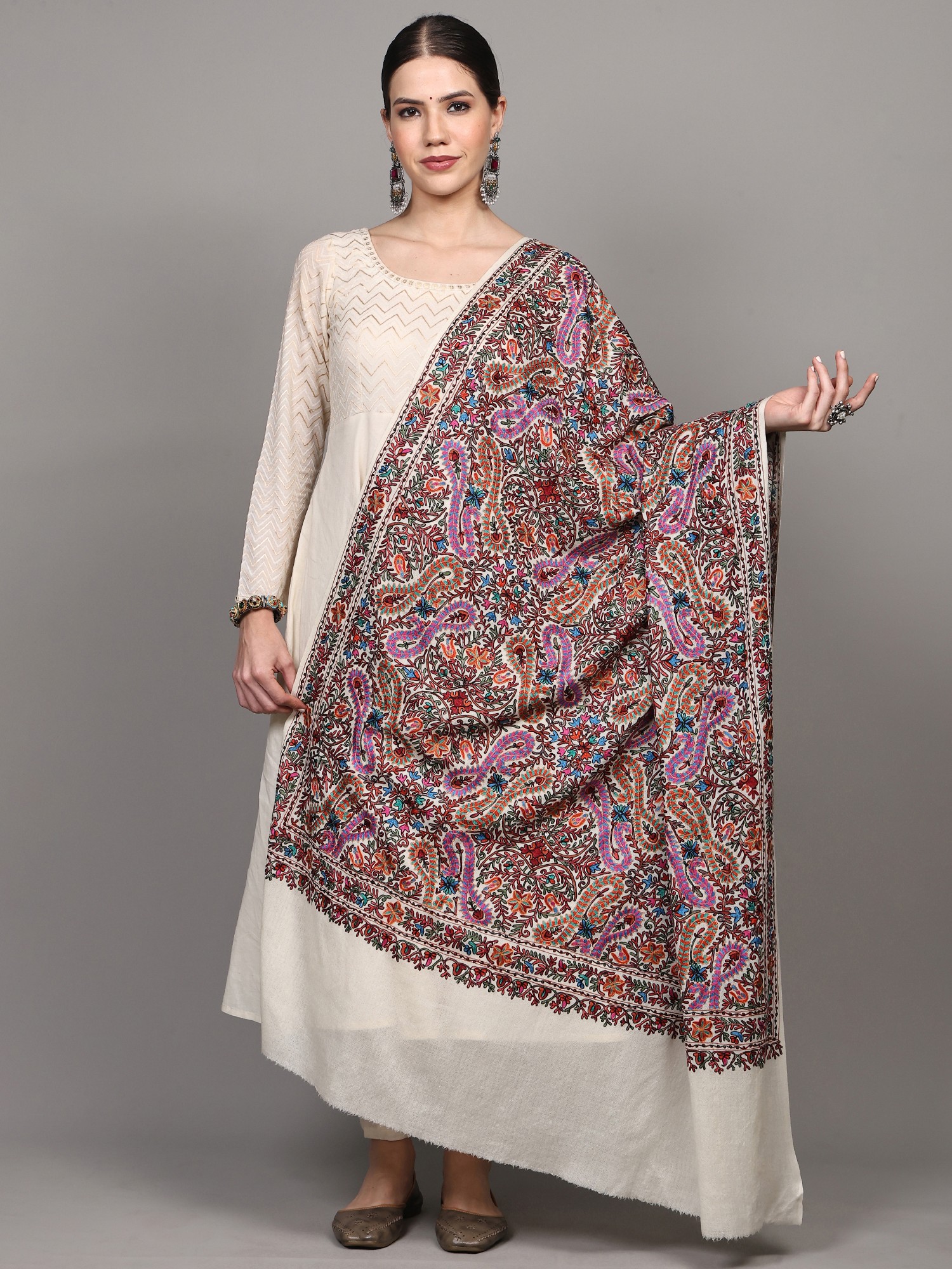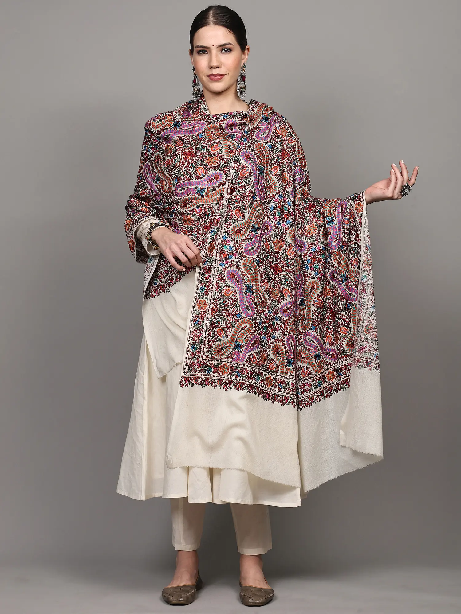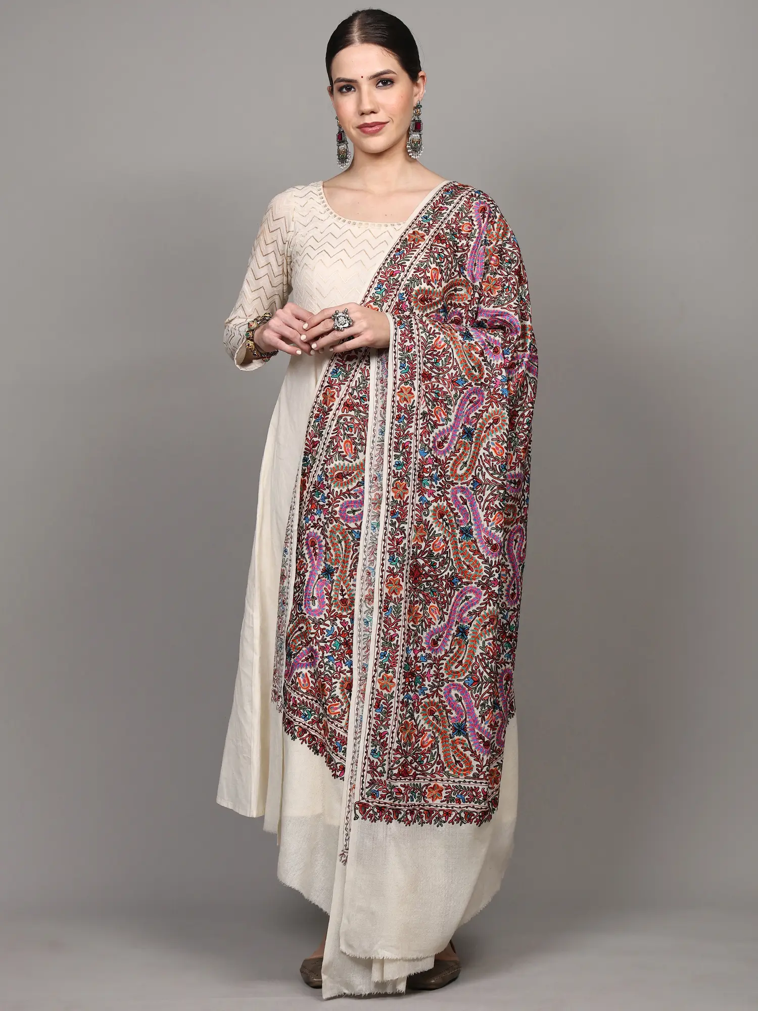 Pure Wool Shawl from Kashmir with Jaaldar Sozni Embroidery by Hand