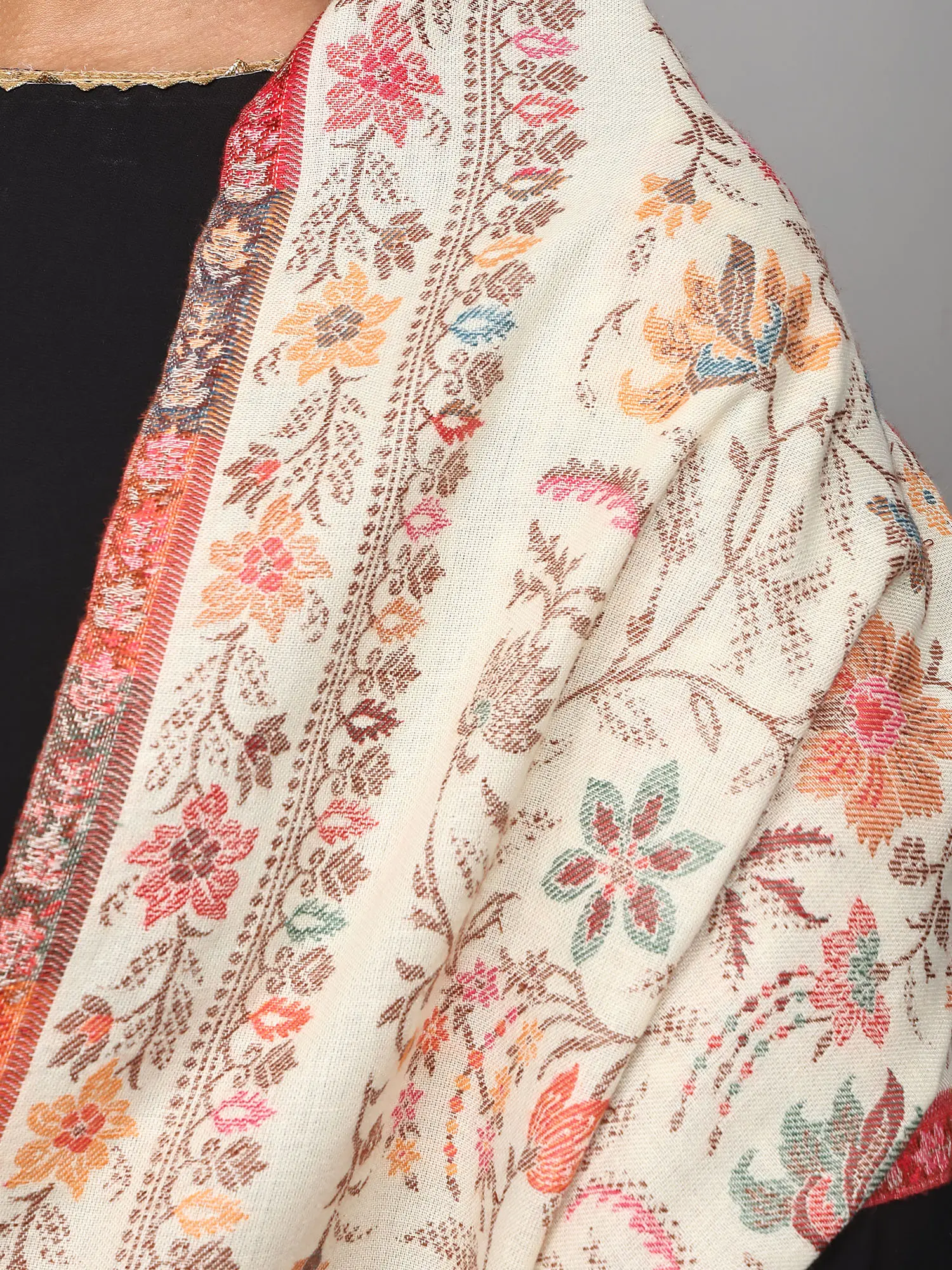 Reversible Jamawar Stole with Woven Paisley Vine from Amritsar