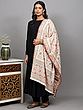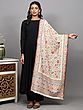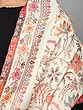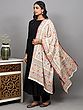 Almond-Peach Kalamkari Stole with Aari Embroidery and Printed Paisley Floral Vines from Amritsar