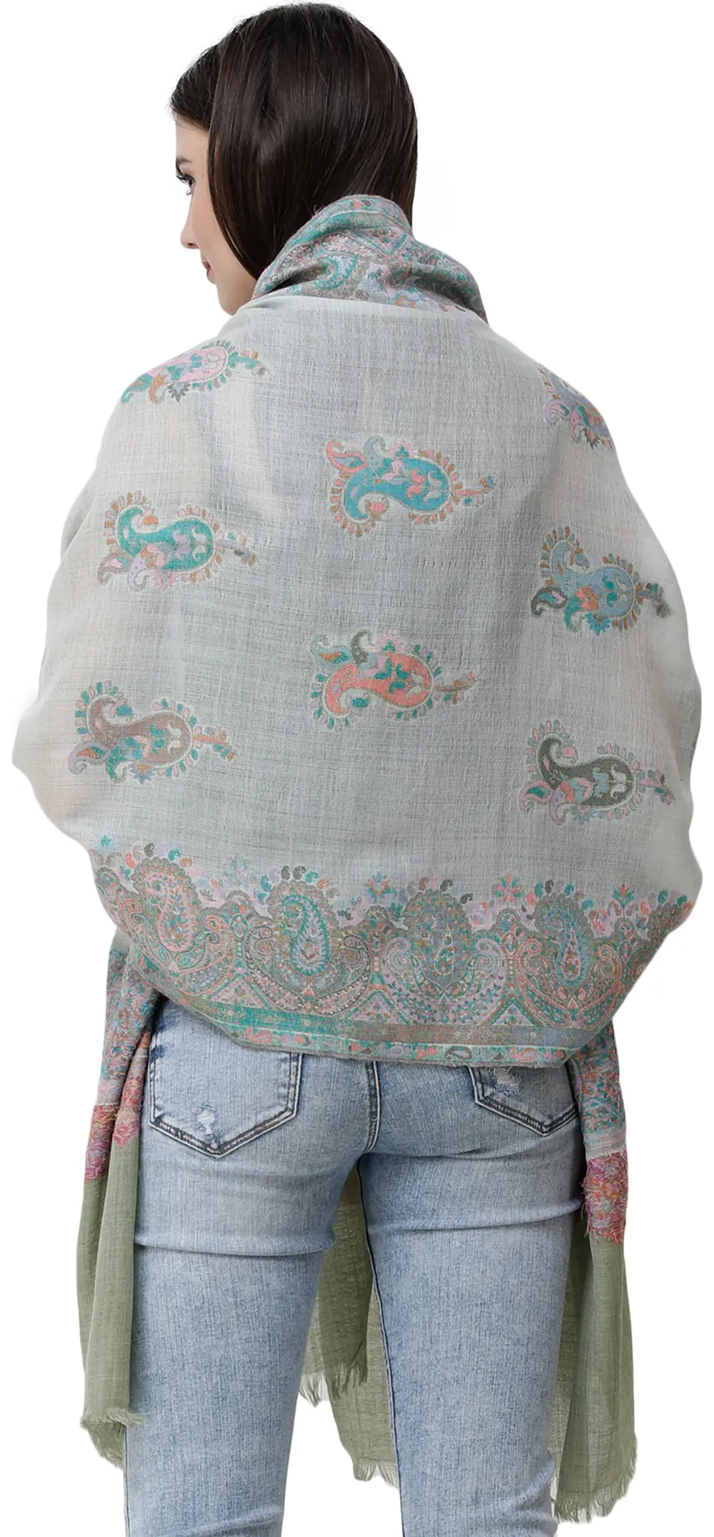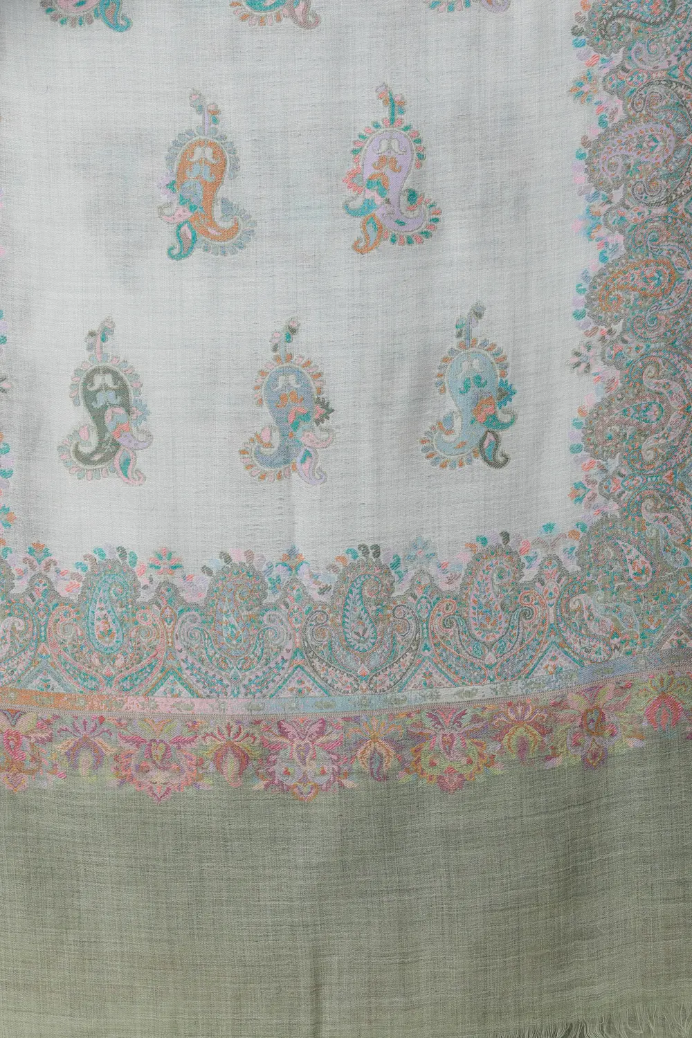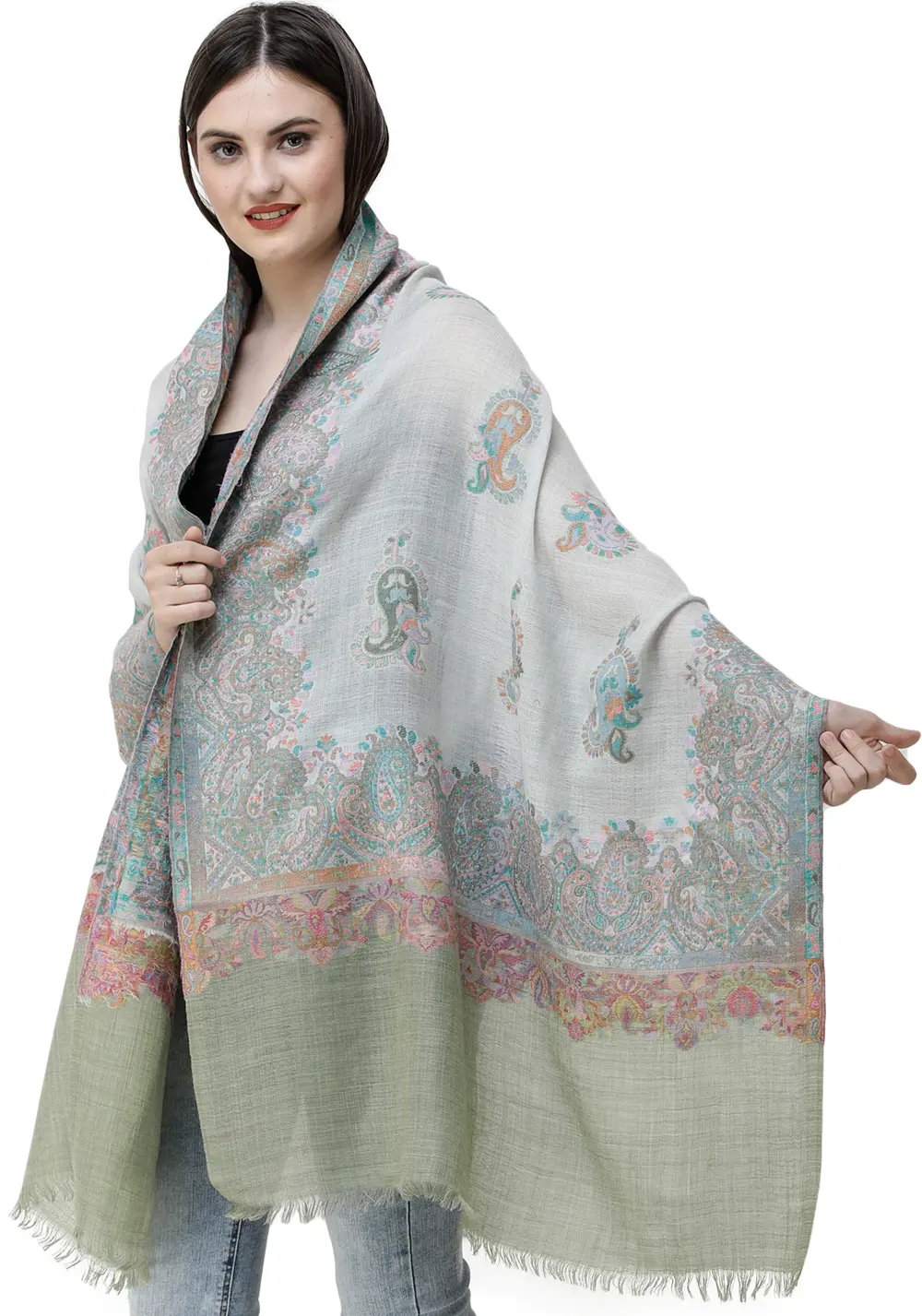Pure Wool Kani Jamawar Shawl from Amritsar with Embroidered Flowers and Paisleys
