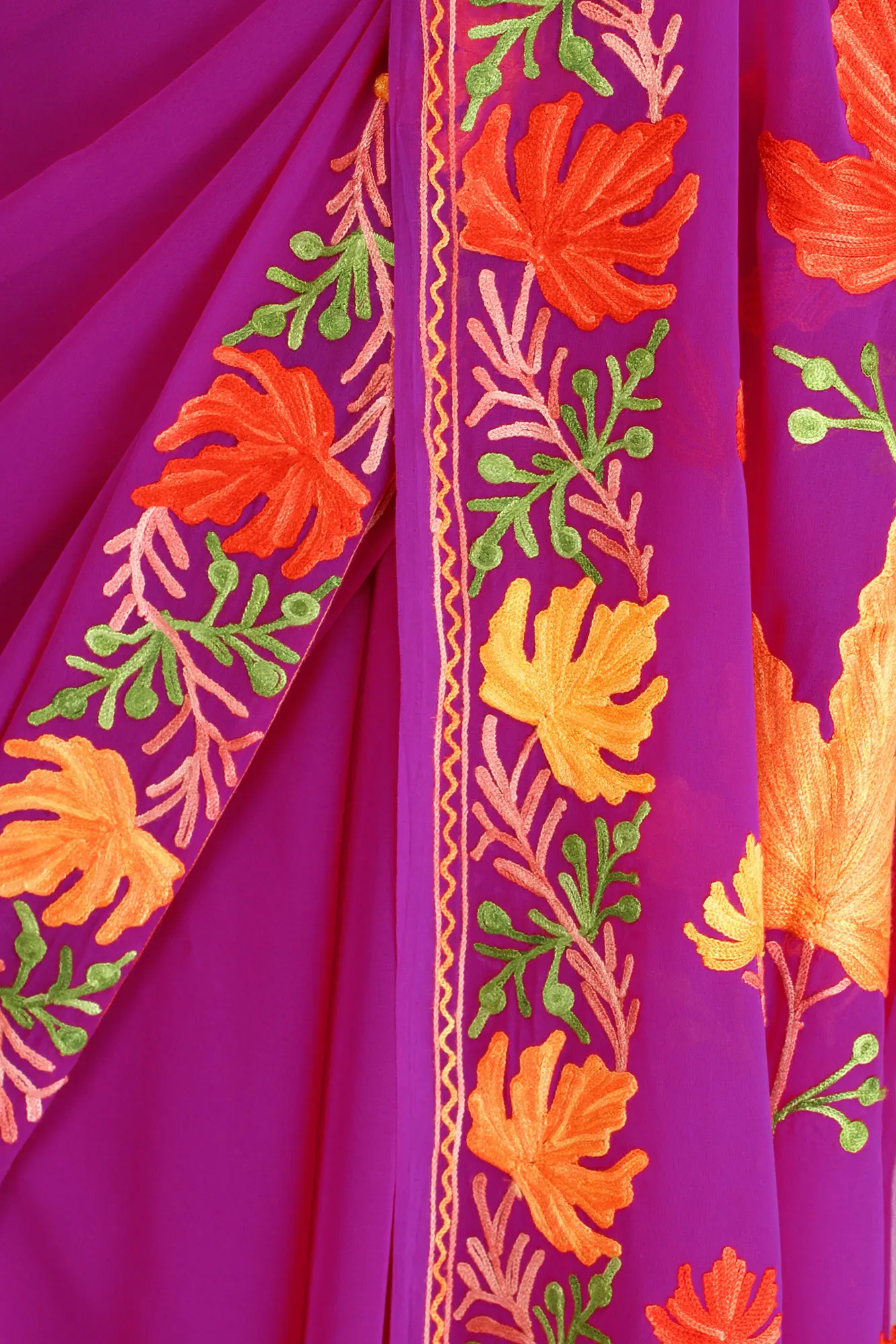 Georgette Kashmiri Sari with Beautiful All-Over Kashida Embroidery