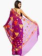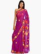 Impatiens-Pink Georgette Saree with Aari Embroidered Paisleys Border and Pallu from Kashmir