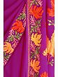 Flamingo-Pink Georgette Saree with Aari Embroidered Paisleys Vine Border and Anchal from Kashmir