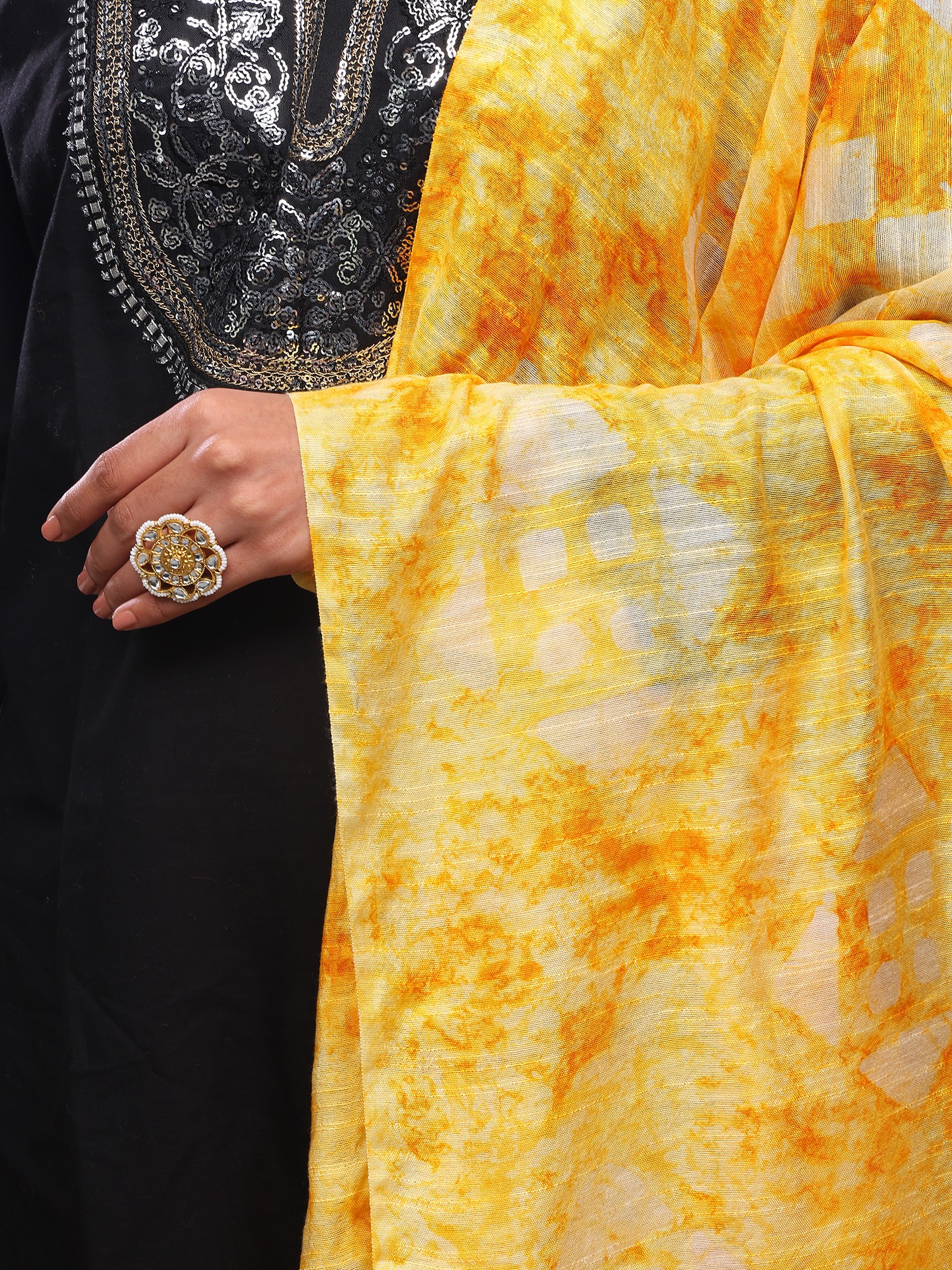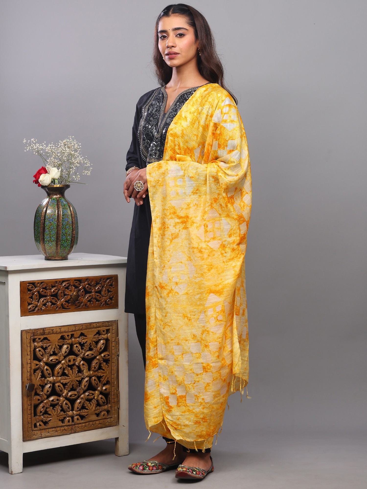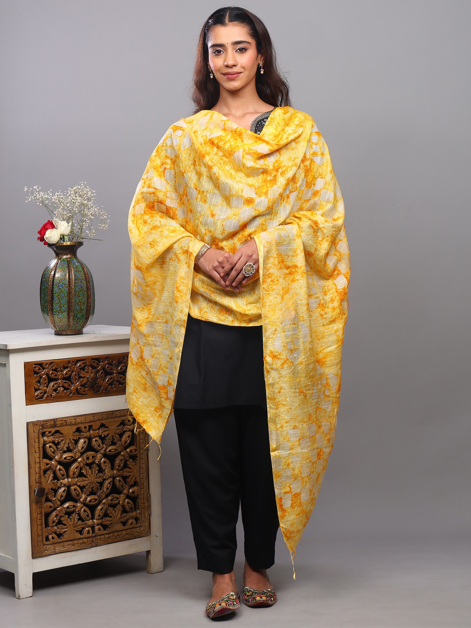Batik Floral Printed Art Silk Dupatta from Telangana with Fringes