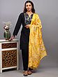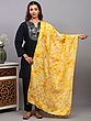 Black-Ink Floral Printed Kalamkari Dupatta from Telangana with Zari Woven Border and Dancing Apsaras