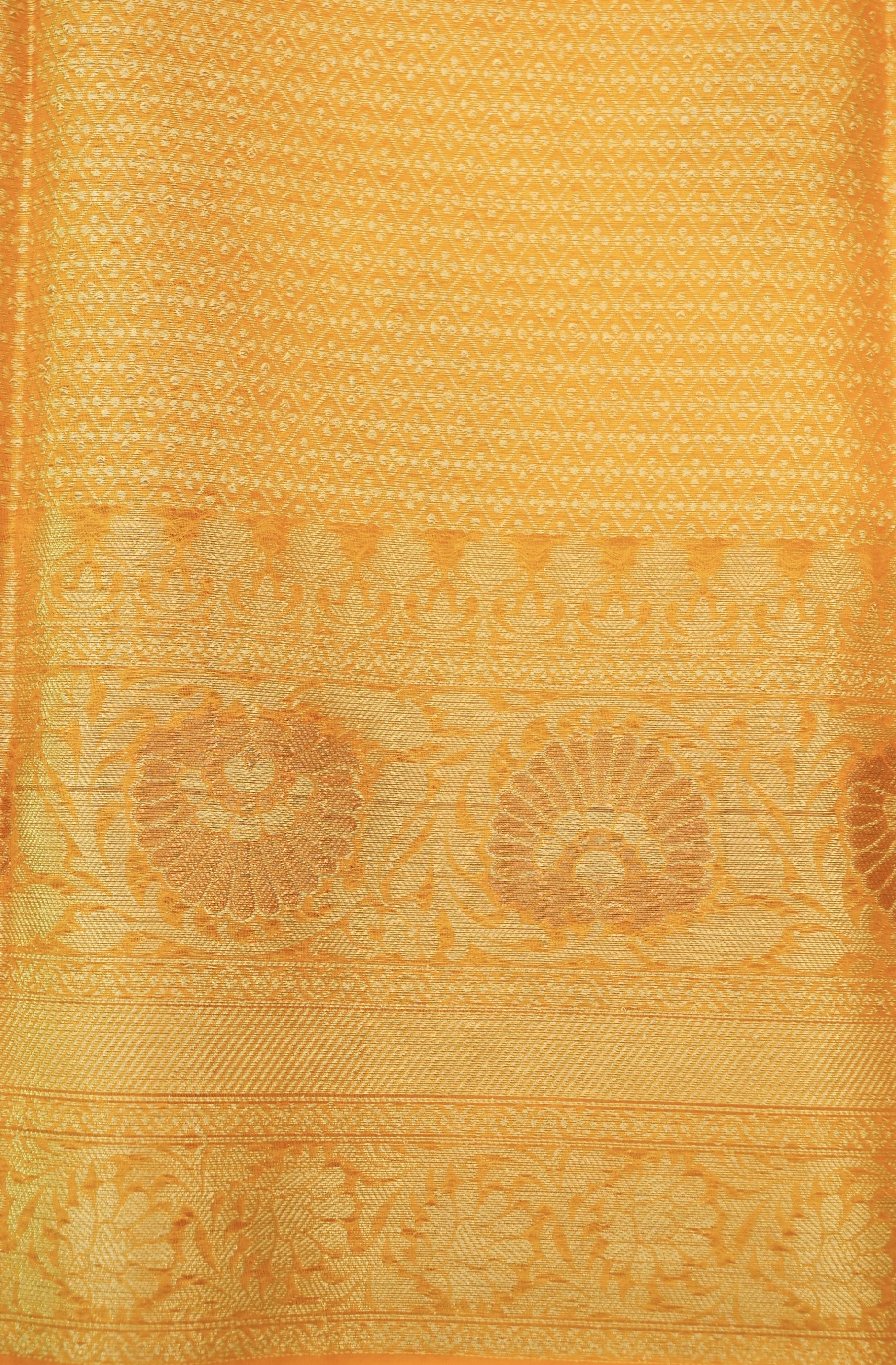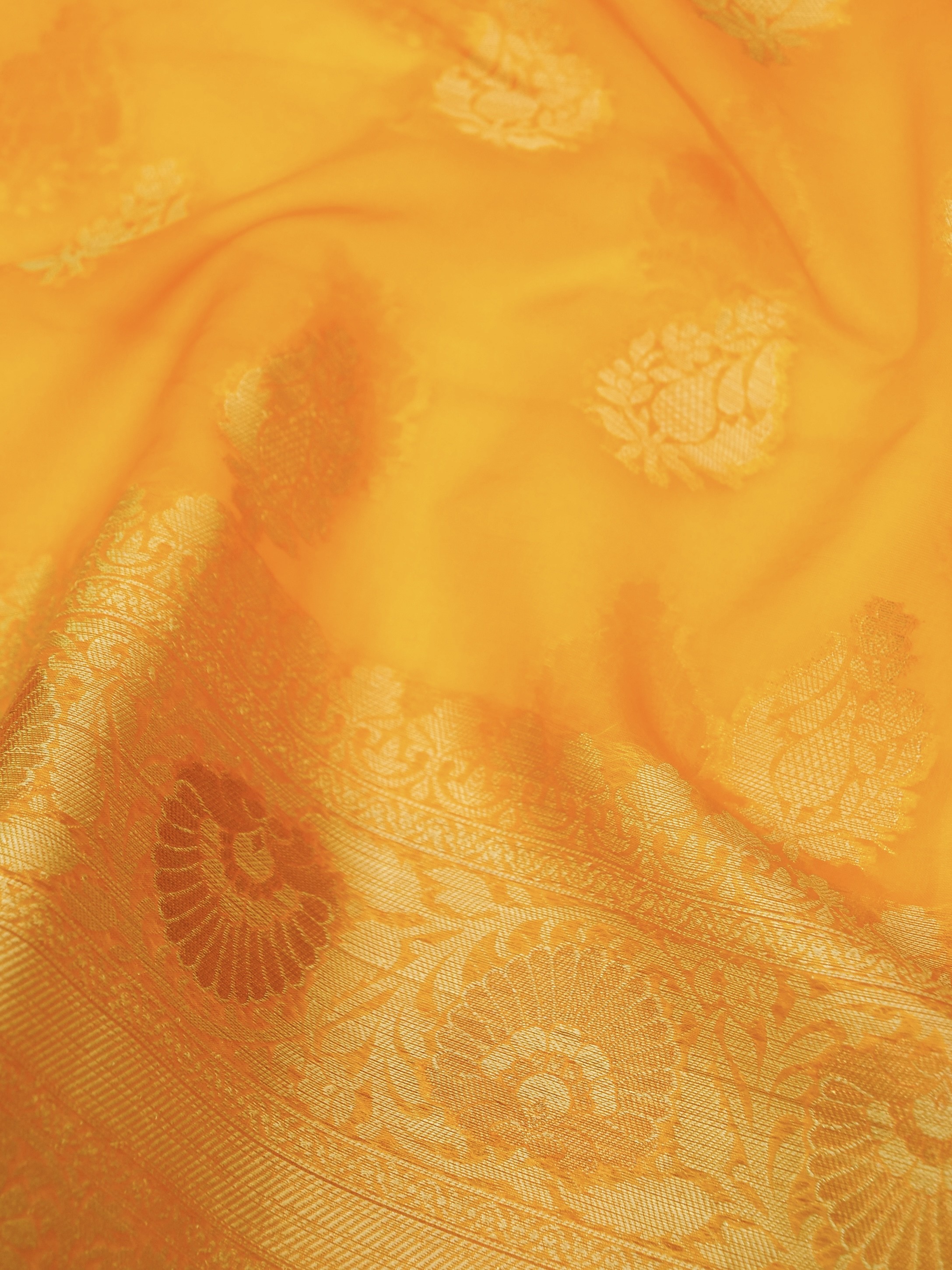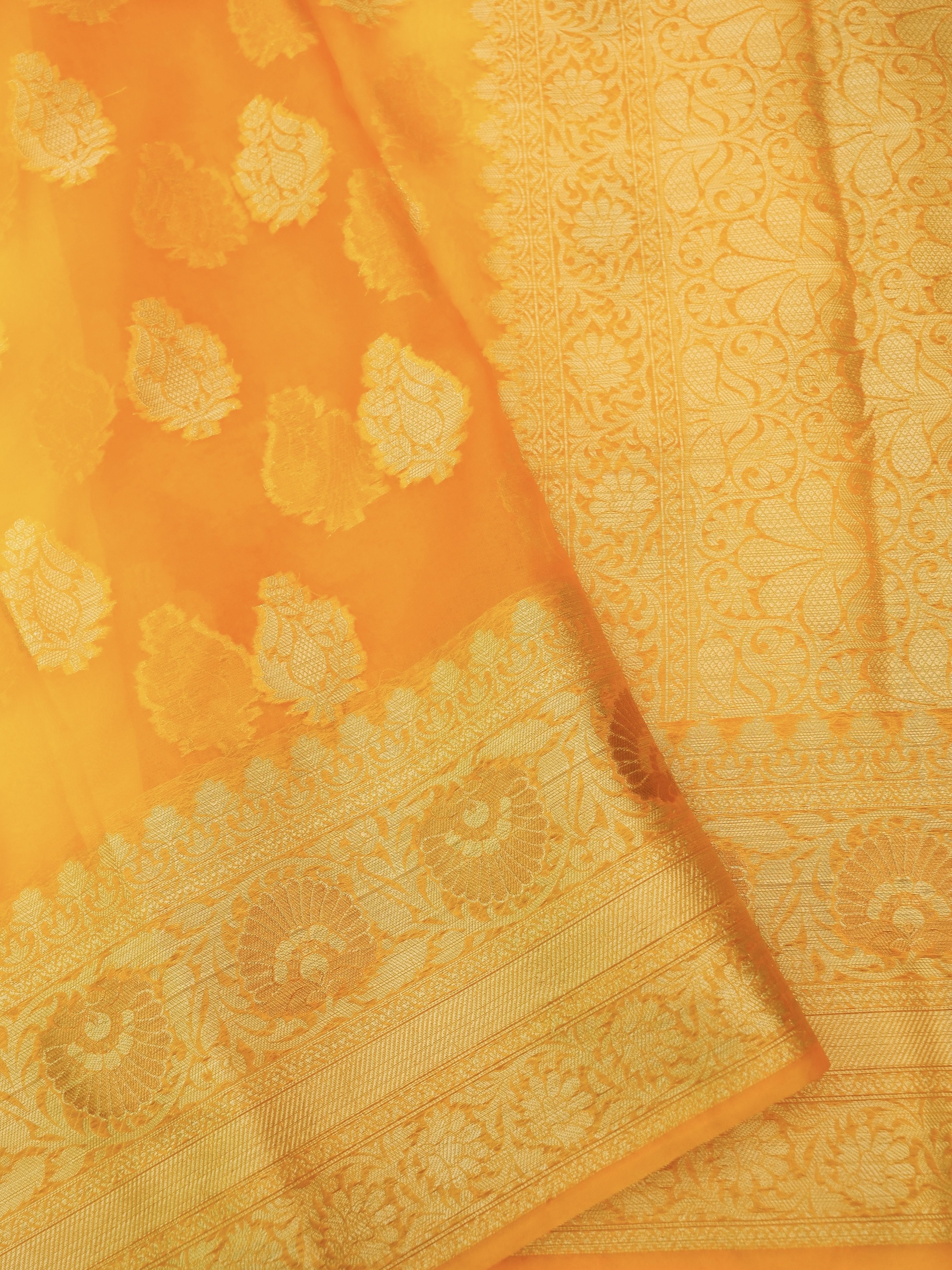 Spectra-Yellow Organza Silk Banarasi Saree with Brocaded Floral Motif