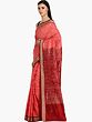 Faded-Rose Pure Cotton Ikat Handloom Sambhalpuri Saree with Animal Motifs and Woven Fish Contrast Pallu & Border