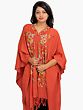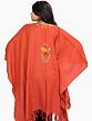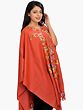 Spiced-Coral Cape from Kashmir with Floral Aari-Embroidery by Hand