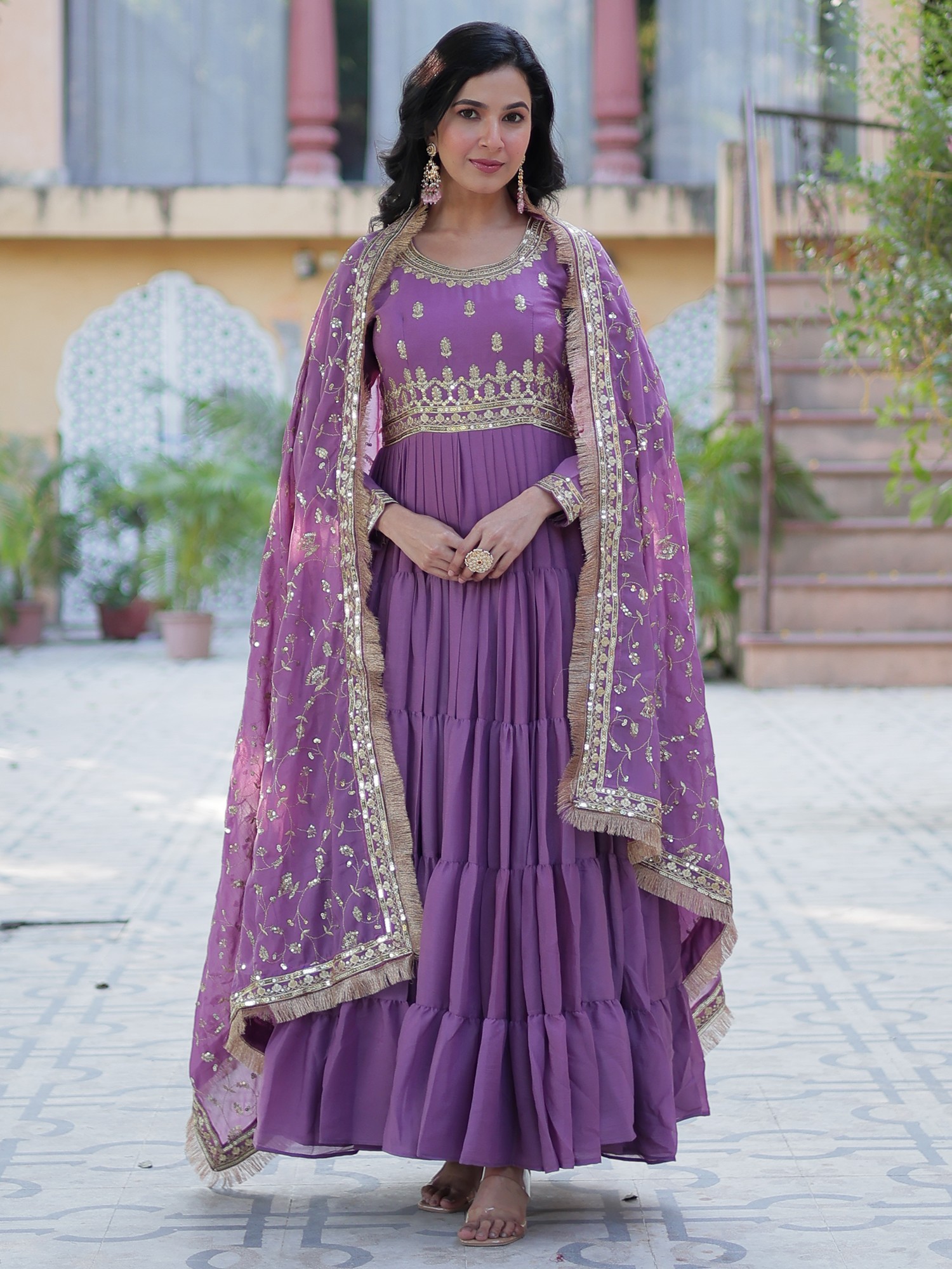 Exquisite Dola Silk Sequins Embroidered Anarkali Gown With Dupatta Glamorous Ethnic Wedding Party Wear