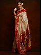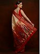 Savvy-Red Brocaded Paithani Uppada Fusion Sari from Bangalore with Peacocks on Border and Heavy Pallu