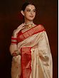 Golden White Maharani Paithani Saree with Chattai Border and Zari Butta