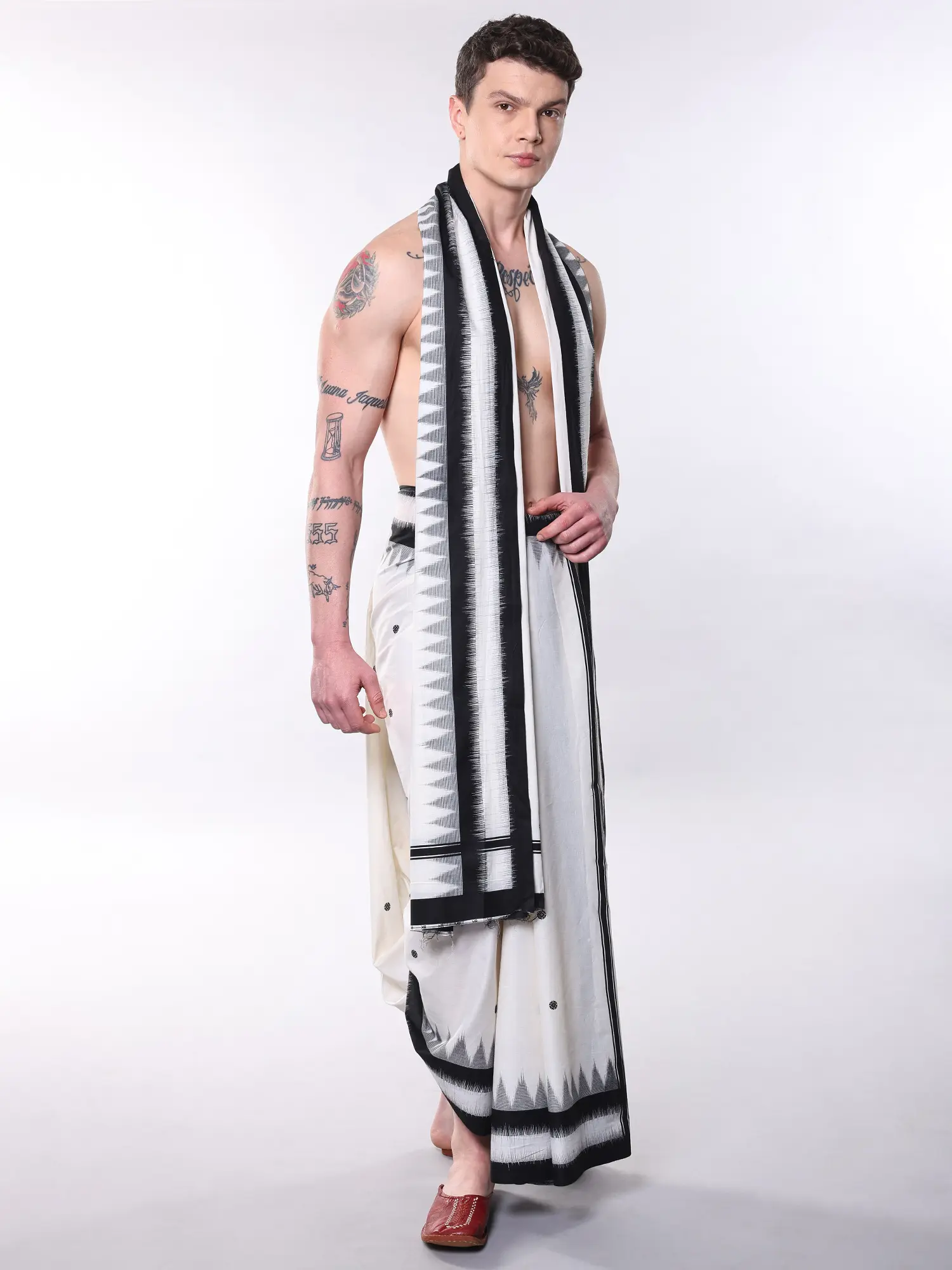 Drape Dhotis with Angavastram Set and Thread woven Temple Border