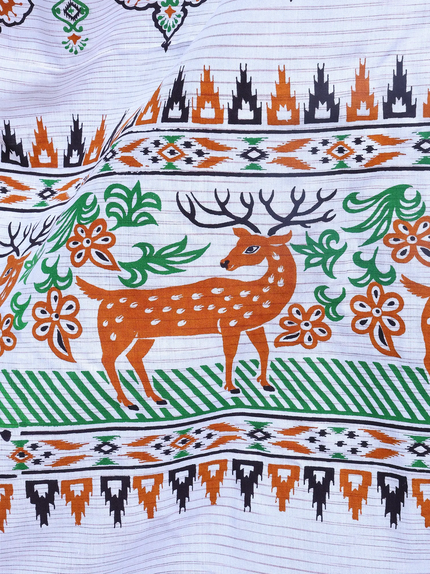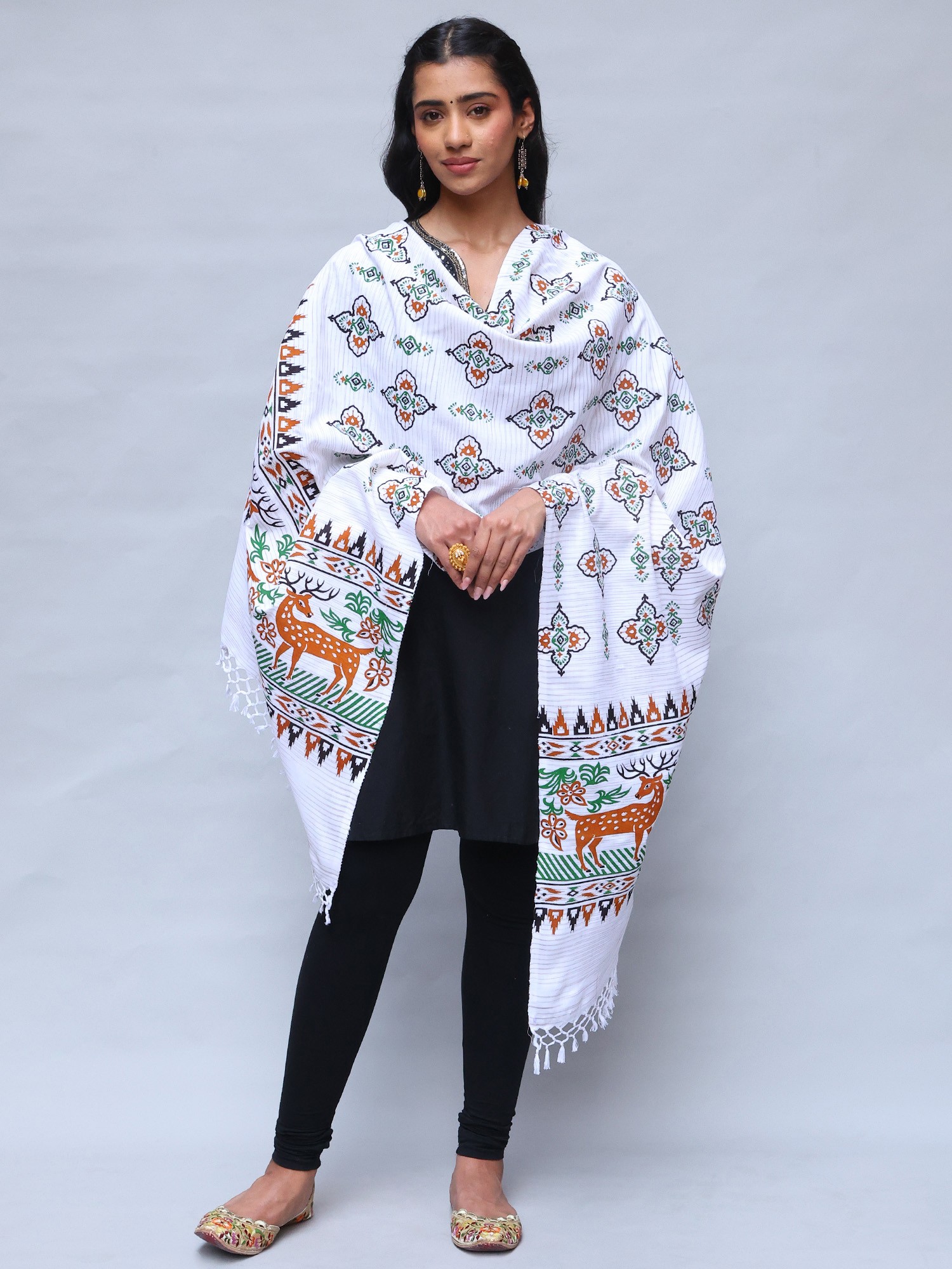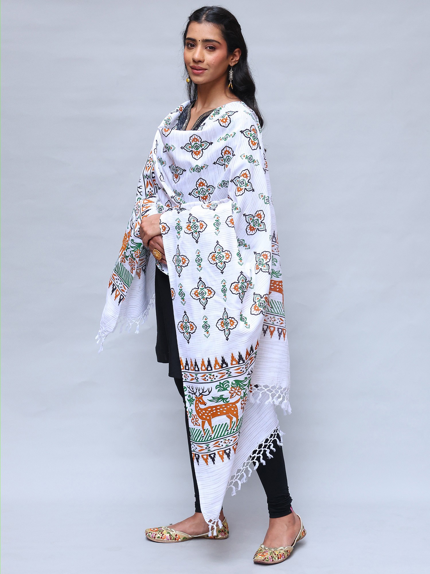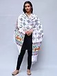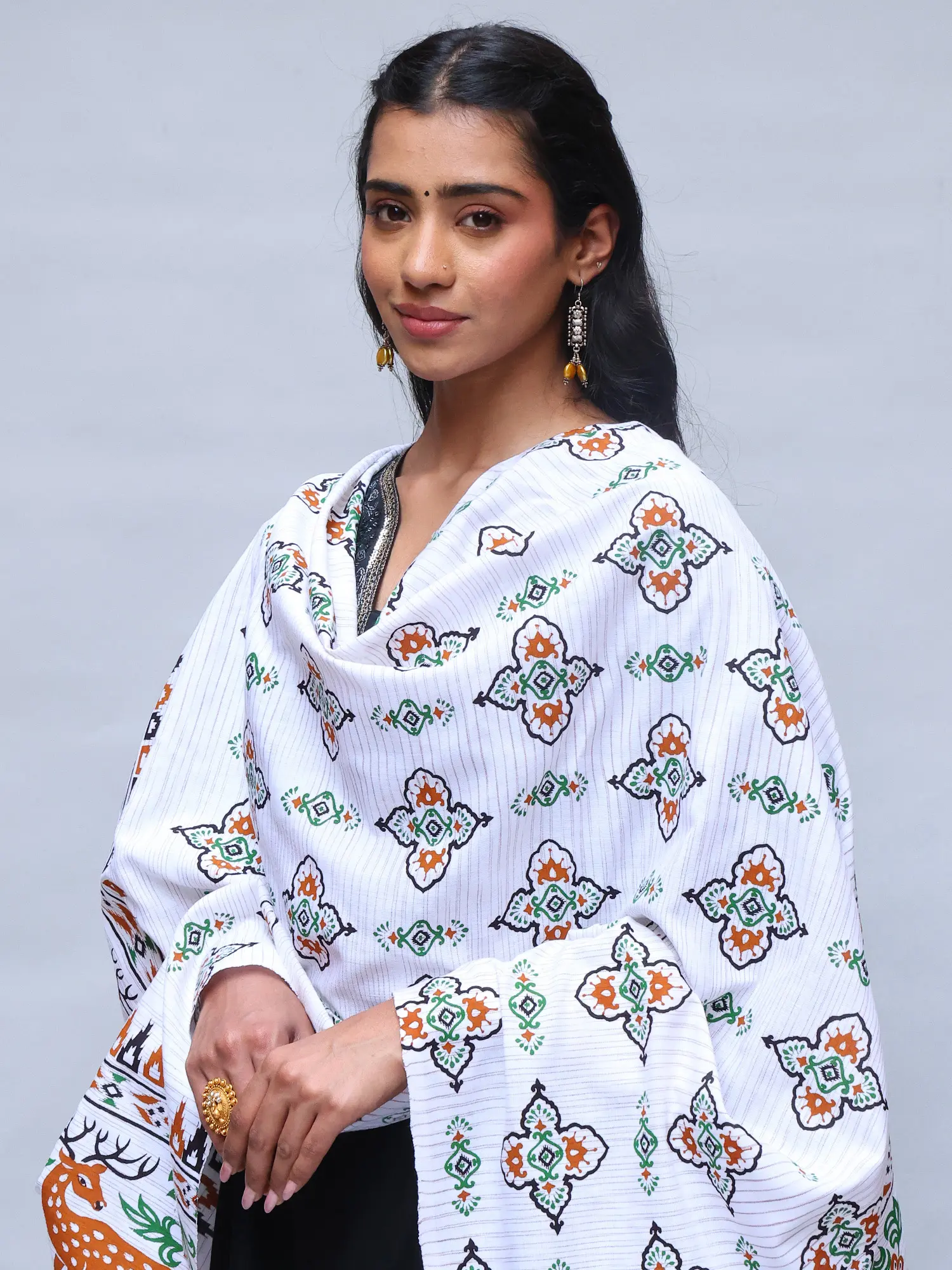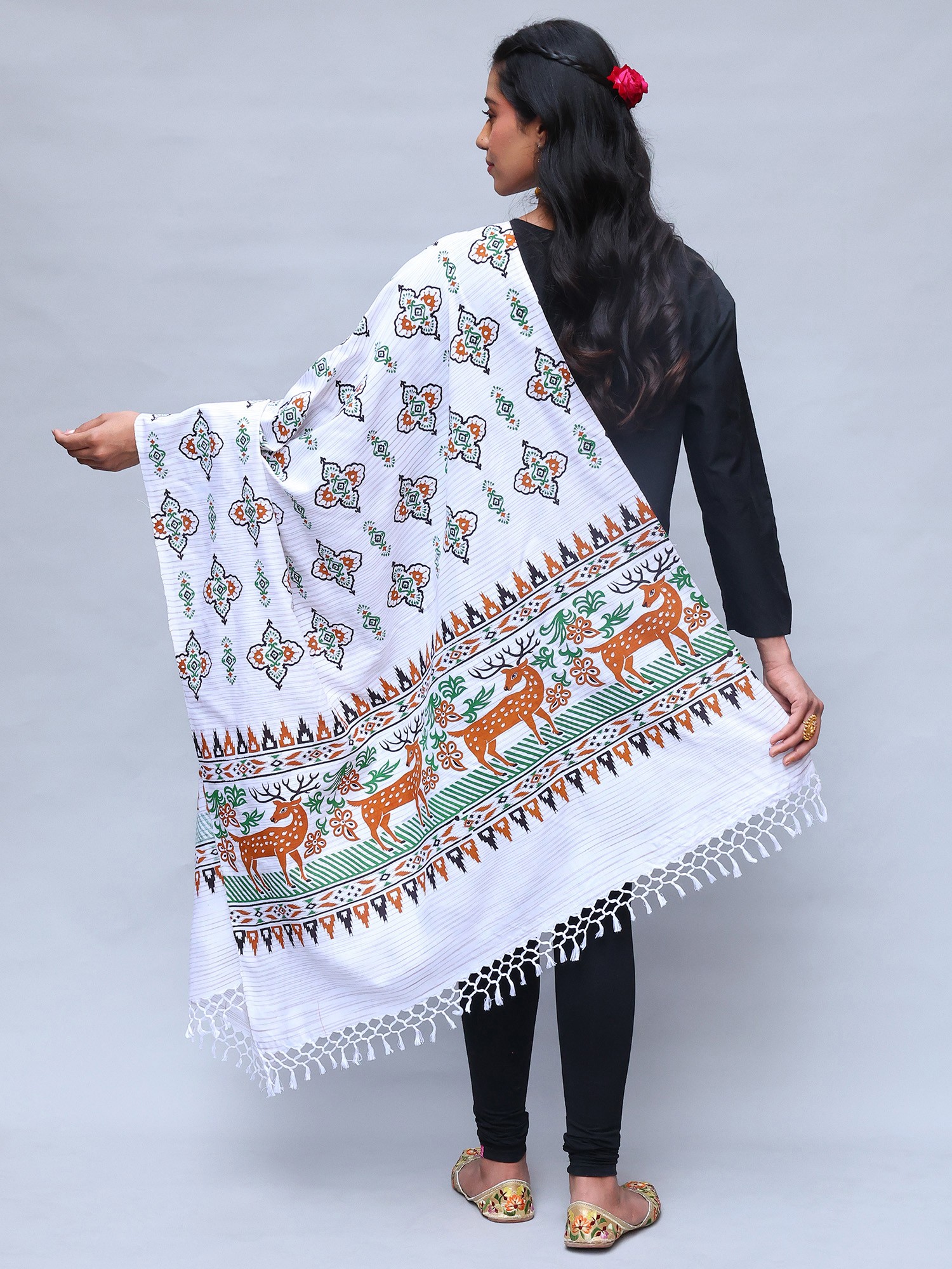 Snow-White Pure Cotton Dupatta from Purvanchal with Printed Floral Jaal