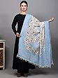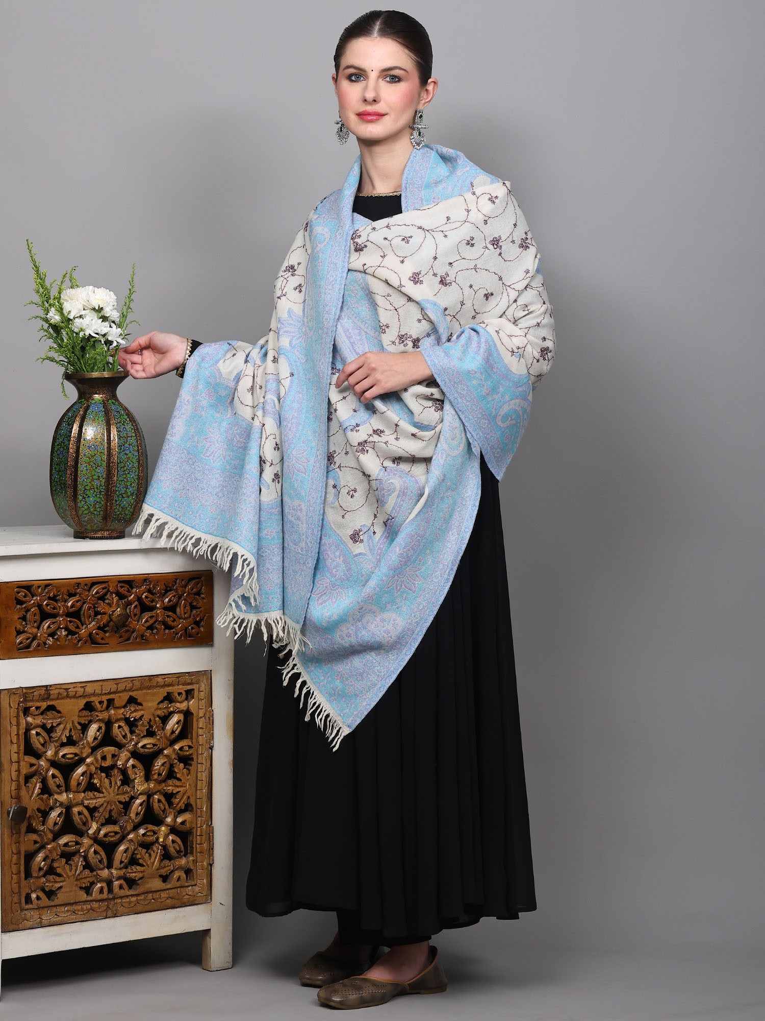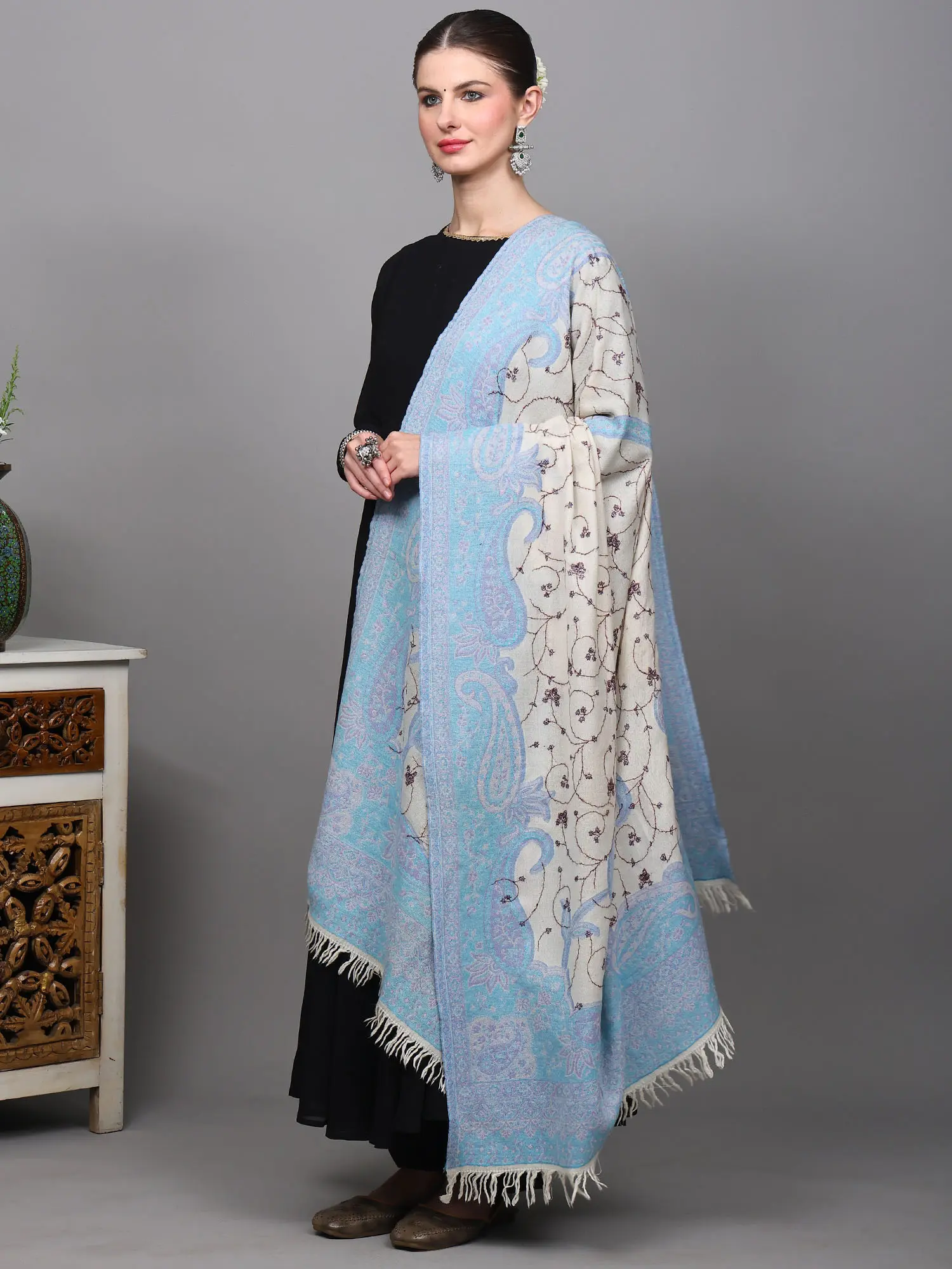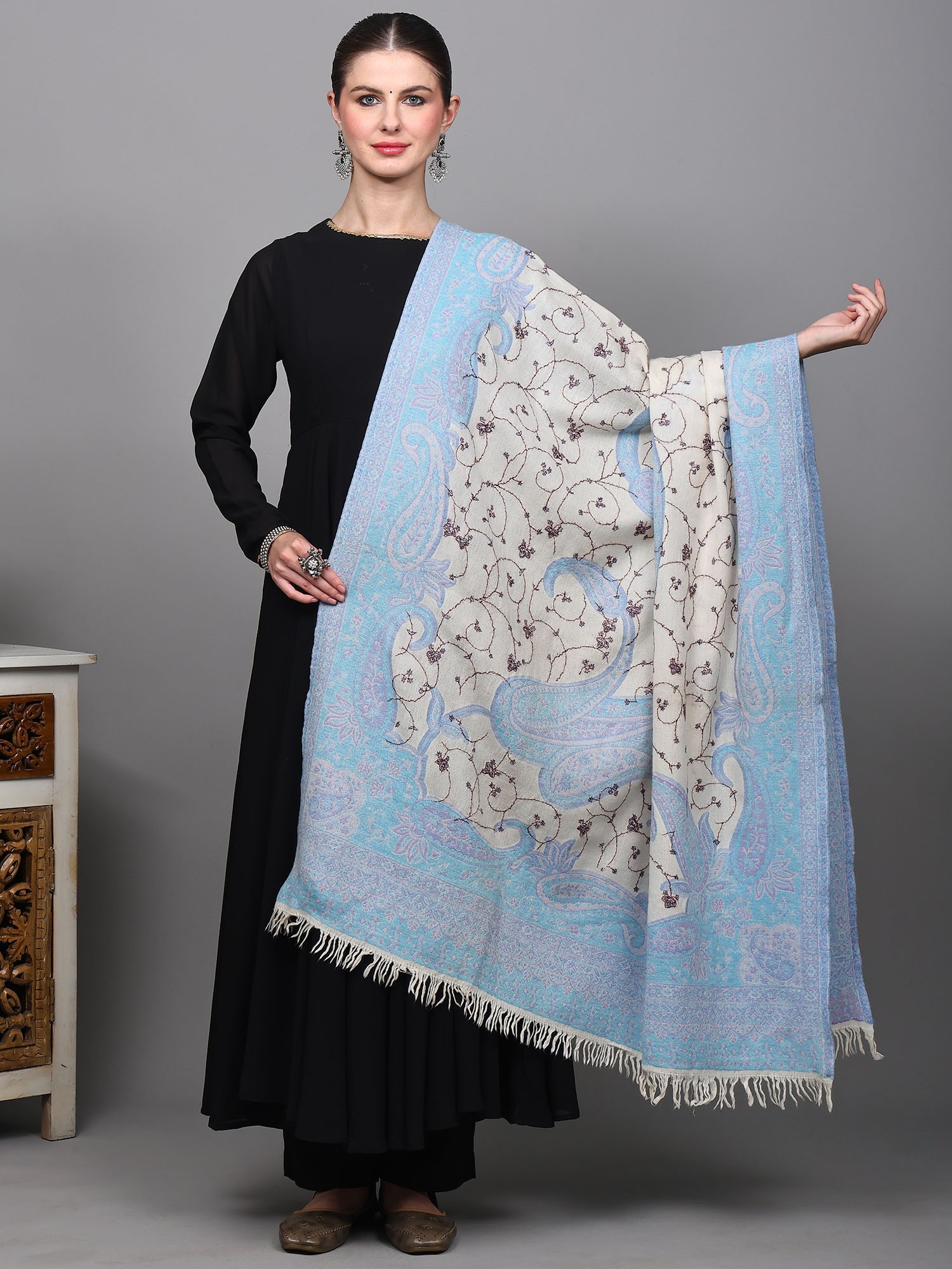 Lyons-Blue Kalamkari Embroidered Shawl with Floral Paisleys Vine from Amritsar