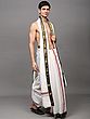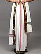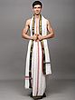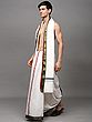Off-White Plain Drape Dhoti and Angavastram Set with Striped Border