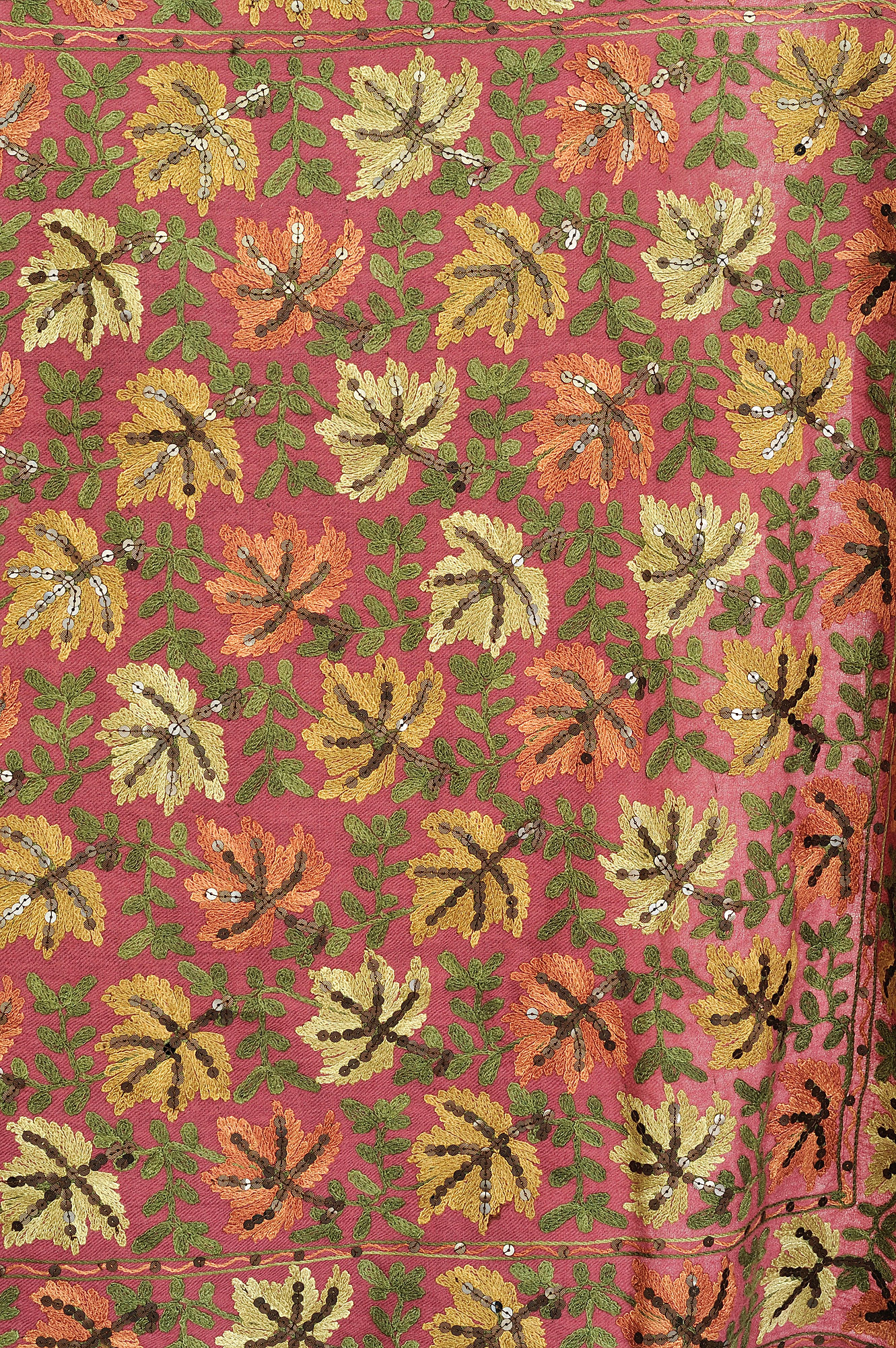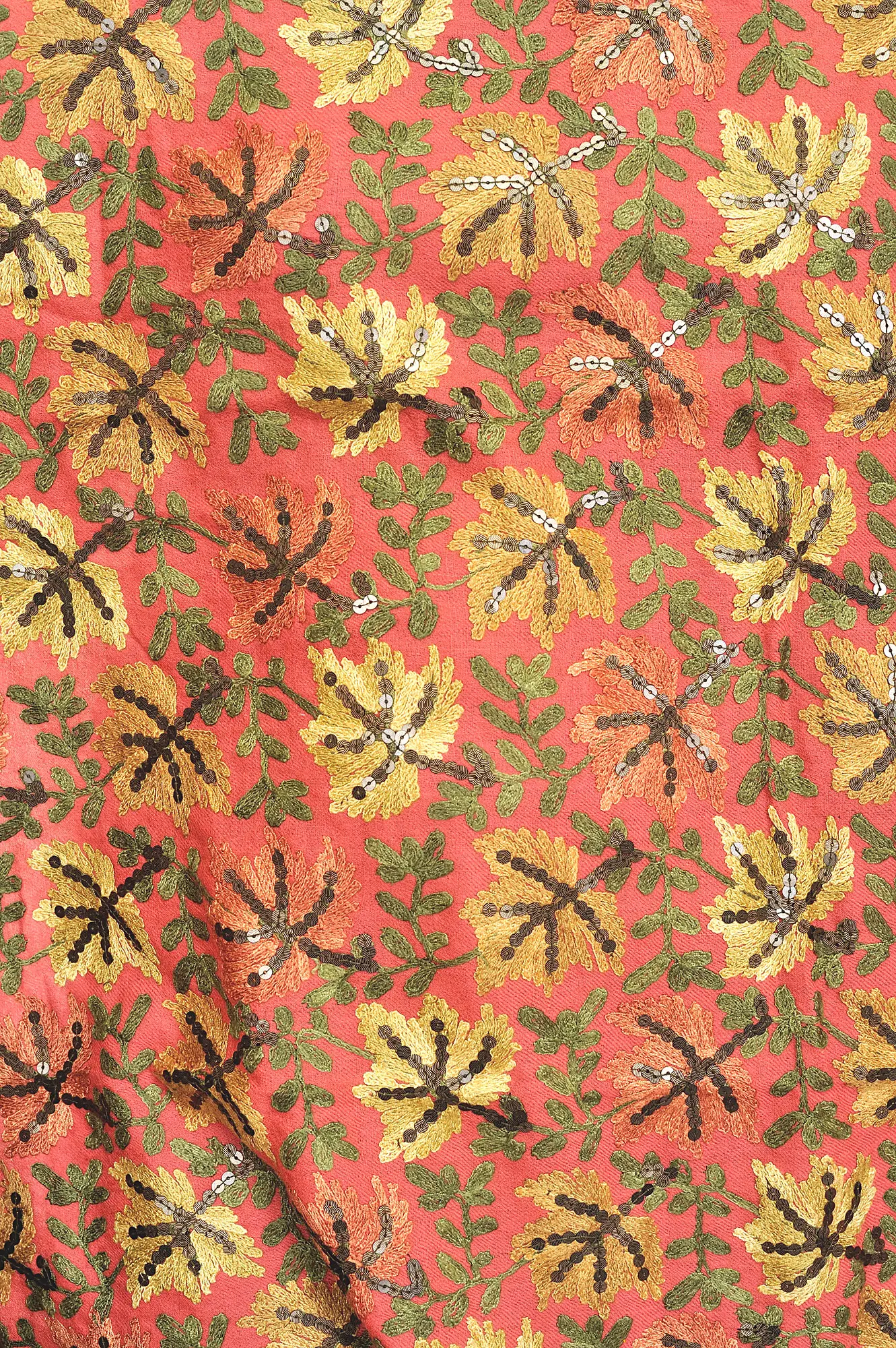 Amritsari Stoles and other hand-embroidered materials are the first attraction for people all around the world. Such articles are created with sheer devotion, this stole showcases the exquisite artistry of skilled artisans. The intricate Aari embroidery of Chinar leaves and delicate sequins adds a touch of royal charm. The Chinar leaf design, steeped in history, finds its roots in the Mughal era and has gracefully evolved through the ages. These masterpieces in your possession not only connect you with heritage but also effortlessly complement modern trends. The rich maroon hue and the soft, luxurious fabric make it a must-have accessory, blending tradition and style seamlessly.
