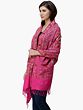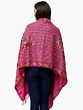 The true magic of this stole lies in its stunning Aari embroidery. Originating from the vibrant land of Punjab, Aari work is characterized by its intricate, chain-stitch technique, which allows for the creation of delicate and detailed patterns. Here, the embroidery blossoms across the rich pink expanse of the stole, featuring a captivating array of flowers and leaves. Each petal, each tendril, is rendered with remarkable precision, showcasing the skill and dedication of the artisan. The floral motifs are rendered in a harmonious palette of earthy tones and subtle pops of color, creating a visual delight that evokes a blooming garden. The dense yet delicate nature of the embroidery ensures that the design is both eye-catching and sophisticated, adding depth and texture to the luxurious wool.