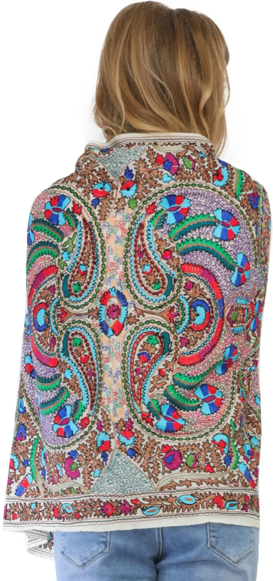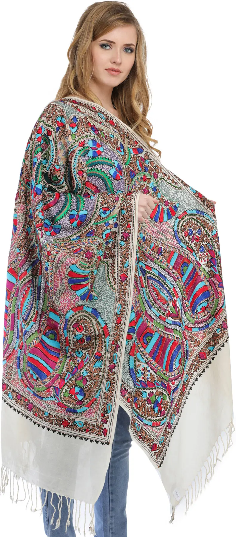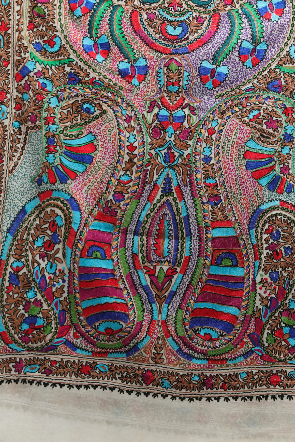 Kashmiri Stole with Aari Hand-Embroidered Bunch of Flowers All-Over