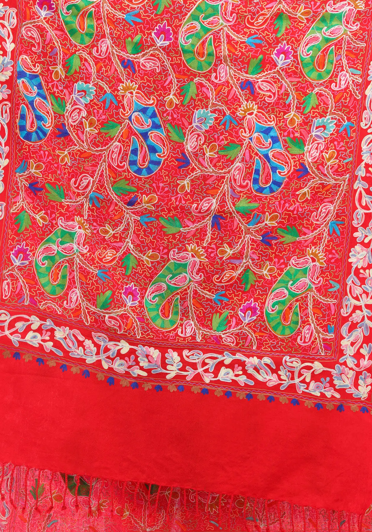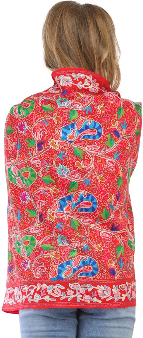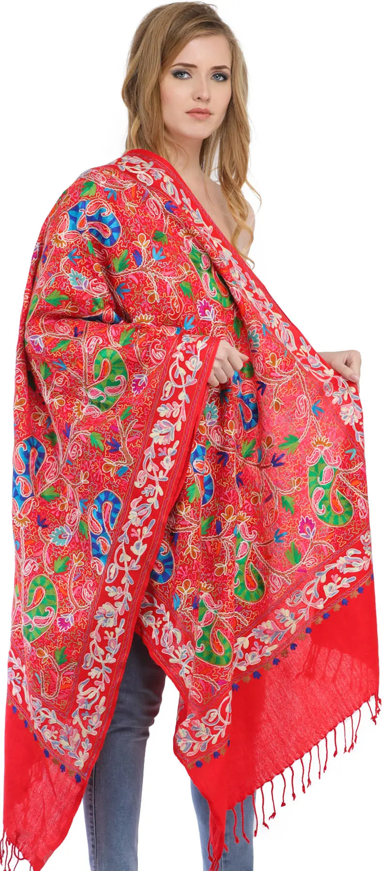 Kashmiri Stole with Aari Hand-Embroidered Bunch of Flowers All-Over
