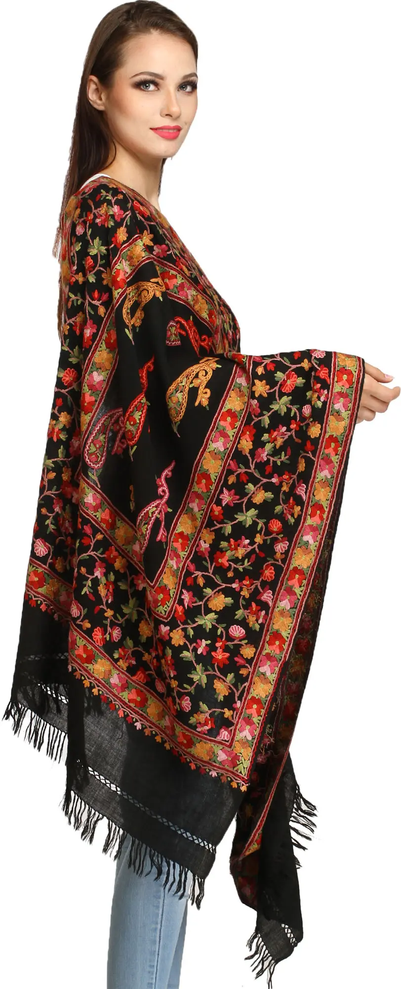 Kashmiri Aari Stole with Hand-Embroidered Tree of Life by Hand