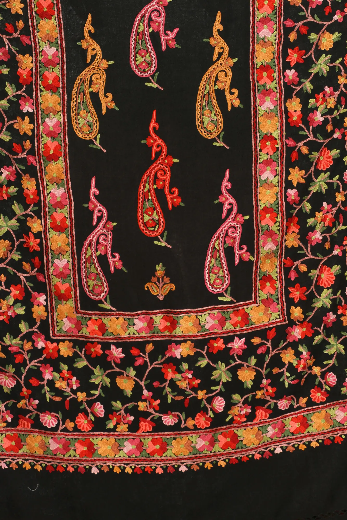 Greener-Pastures Kashmiri Stole with Aari-Hand Embroidered Giant Flowers