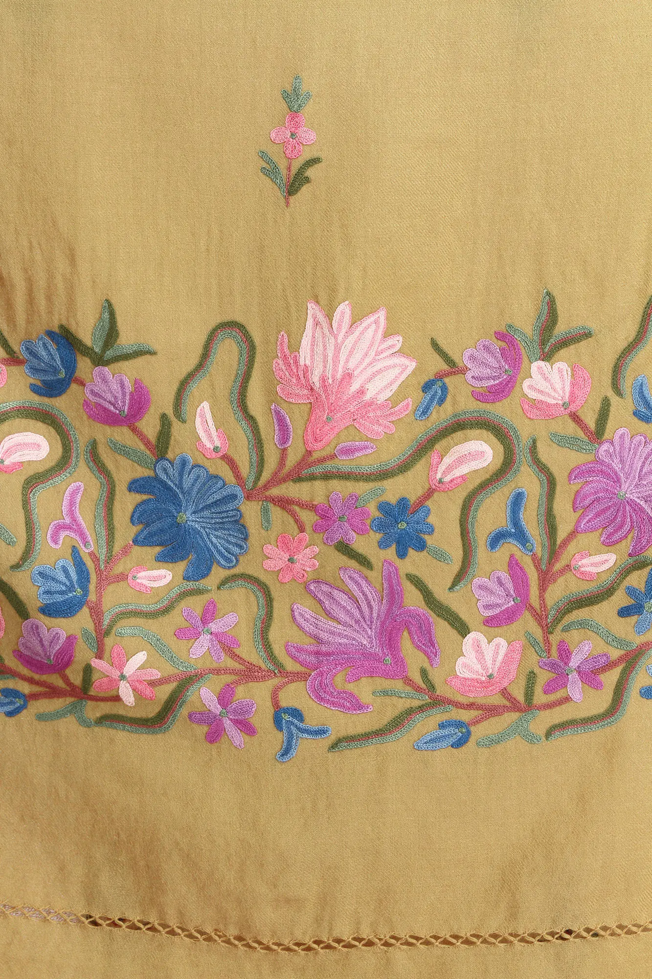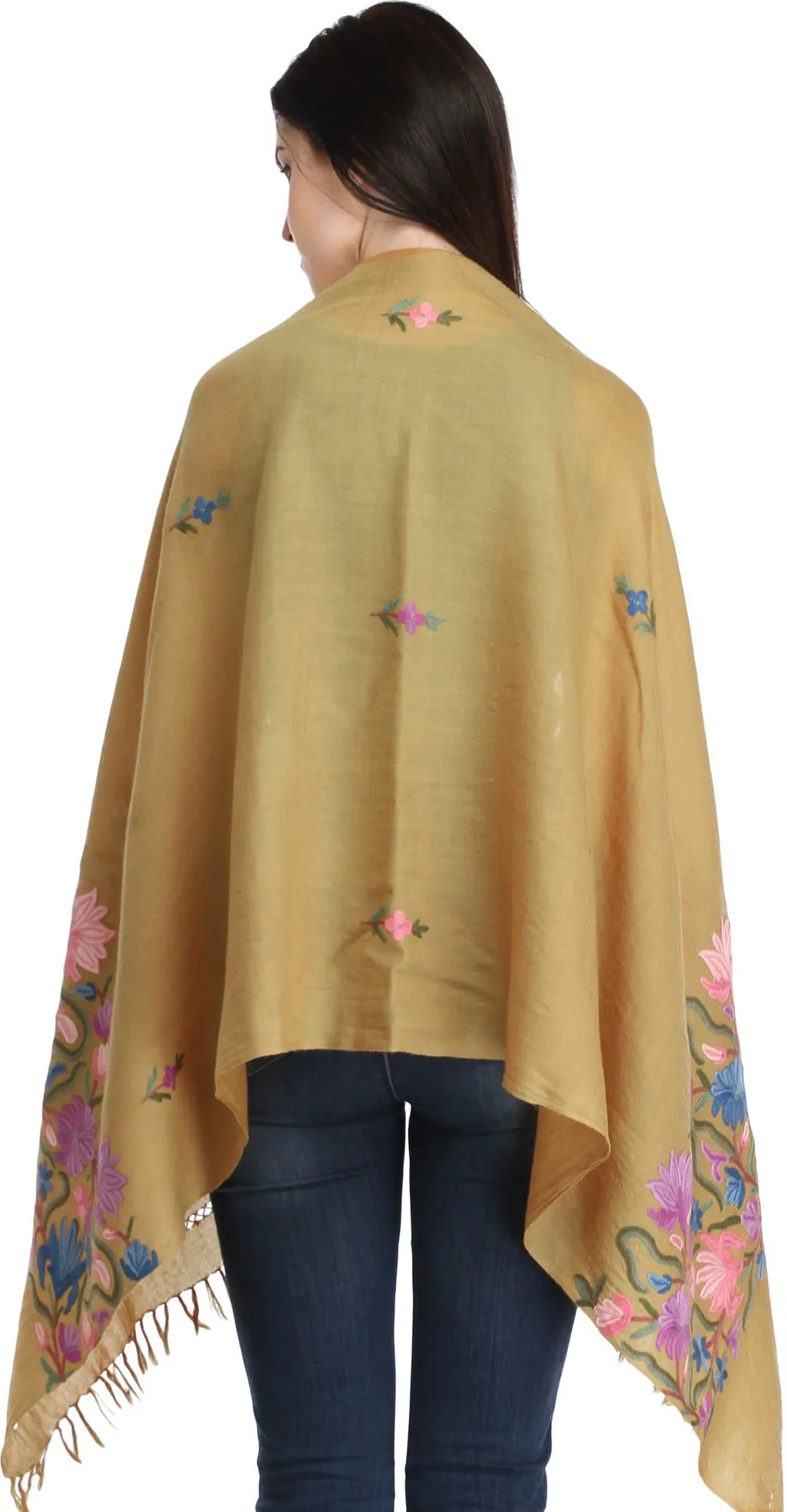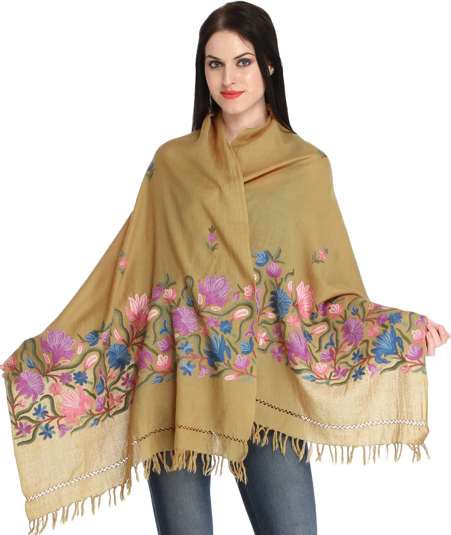 Greener-Pastures Kashmiri Stole with Aari-Hand Embroidered Giant Flowers