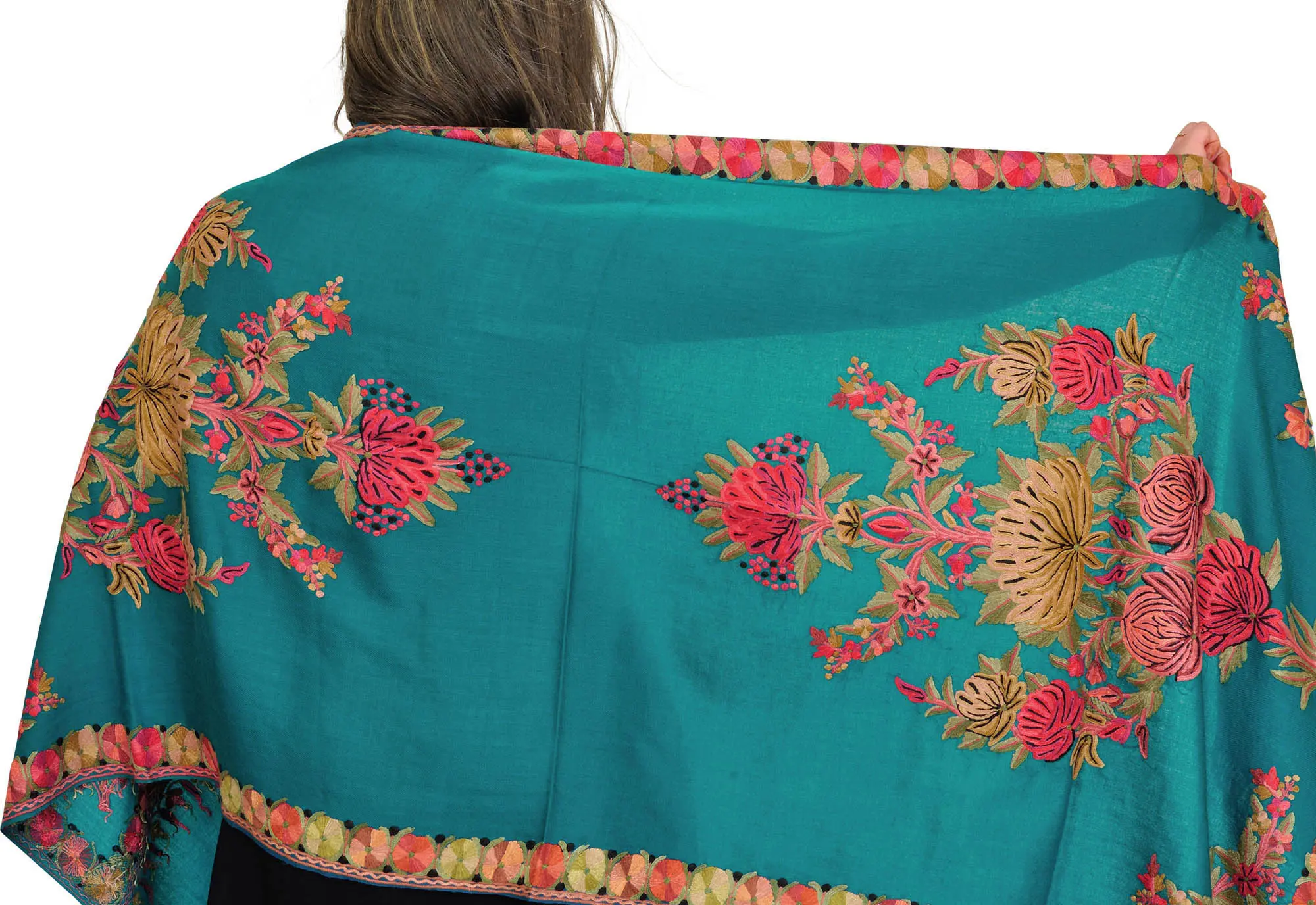 Kashmiri Stole with Aari Hand-Embroidered Flowers and Paisleys