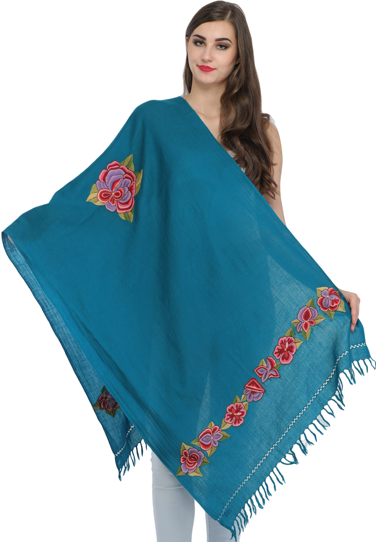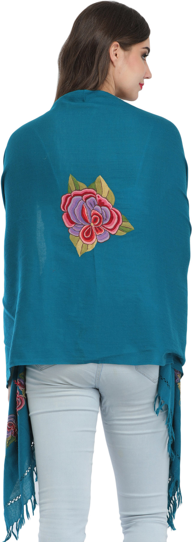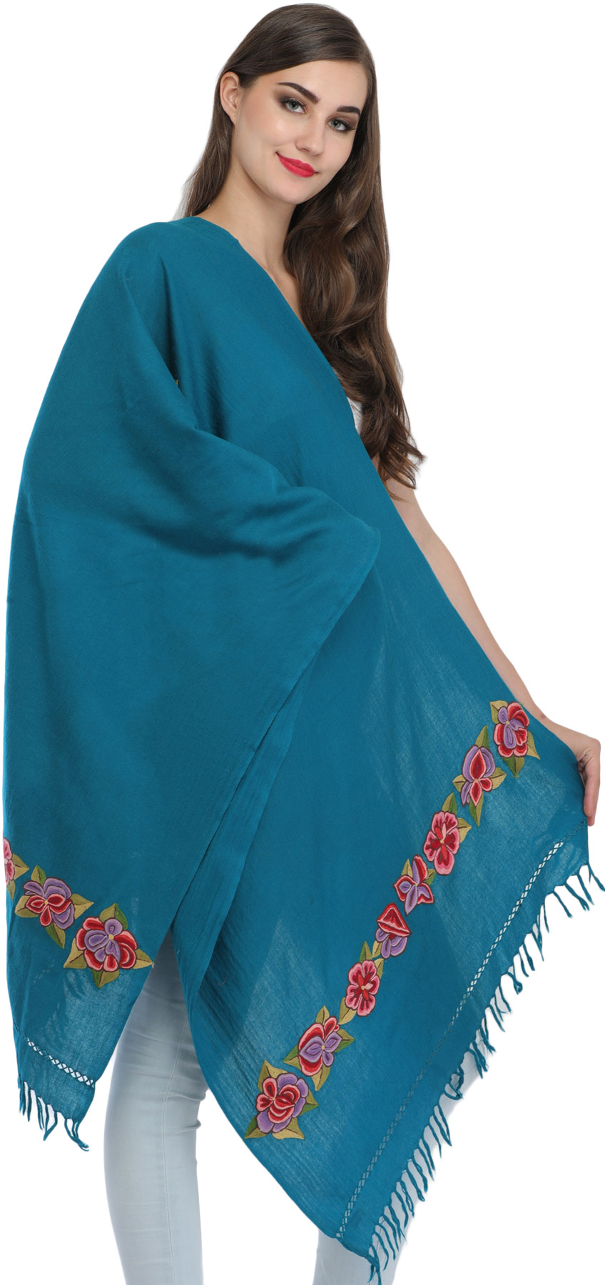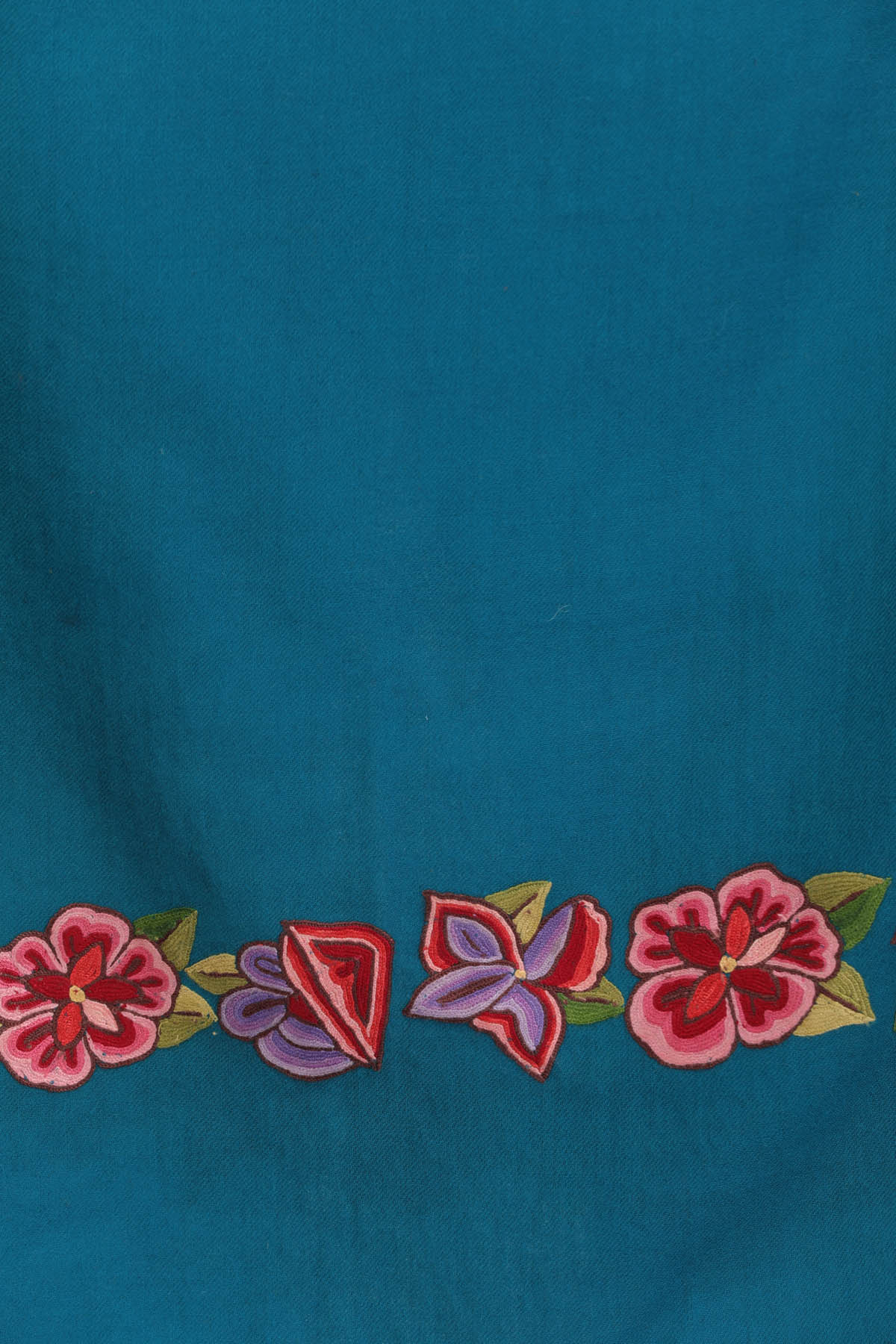 An elegant and sophisticated stole for women made of 100% wool, the Kashmiri stole features a large floral pattern with aari-hand embroidery flowers at the border. This stole can be worn on any formal occasion with an Indian outfit. Aari hand embroidery is a traditional Kashmiri art that has been practised for centuries. In this stole, the artist designed and has stitched on fabric by using fine woollen thread. The design is of flowers or leaves with different colours and motifs. The most common motif used in Aari embroidery is the flower design. At times, animal figures are also used as part of the design. The Kashmiri stole is a traditional shawl worn in the Indian subcontinent for centuries. This long, rectangular cloth was traditionally worn draped over the shoulders to protect against cold weather and dust. The stole is often embroidered with bright colours and patterns or woven with intricate designs.