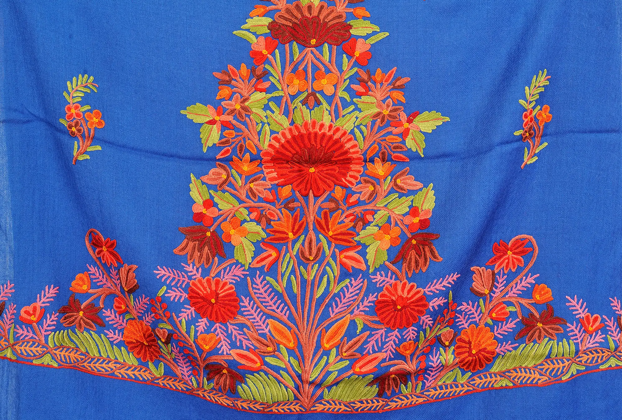 Pastel-Green Kashmiri Tusha Stole with Needle Hand-Embroidery All-Over