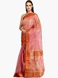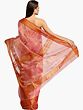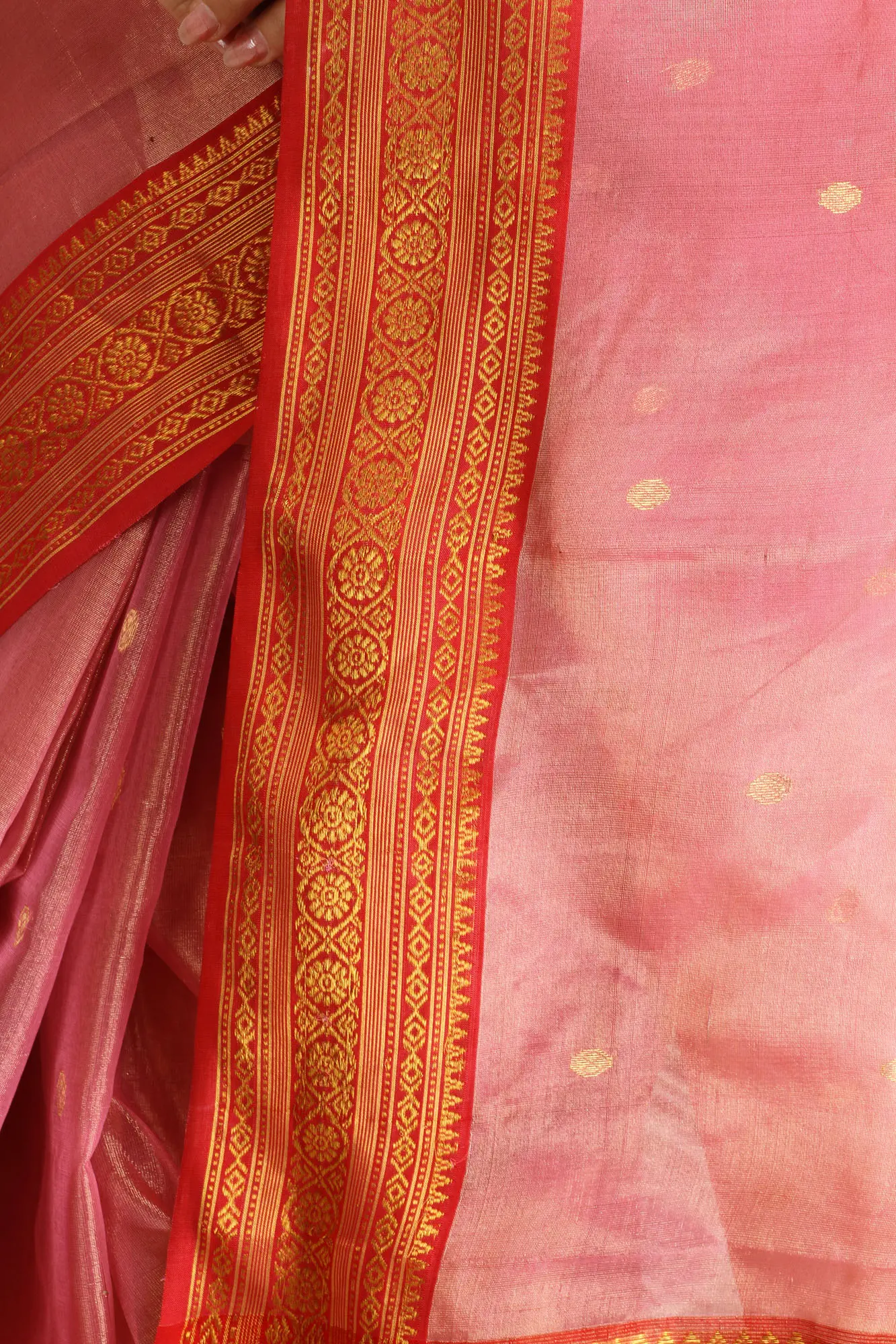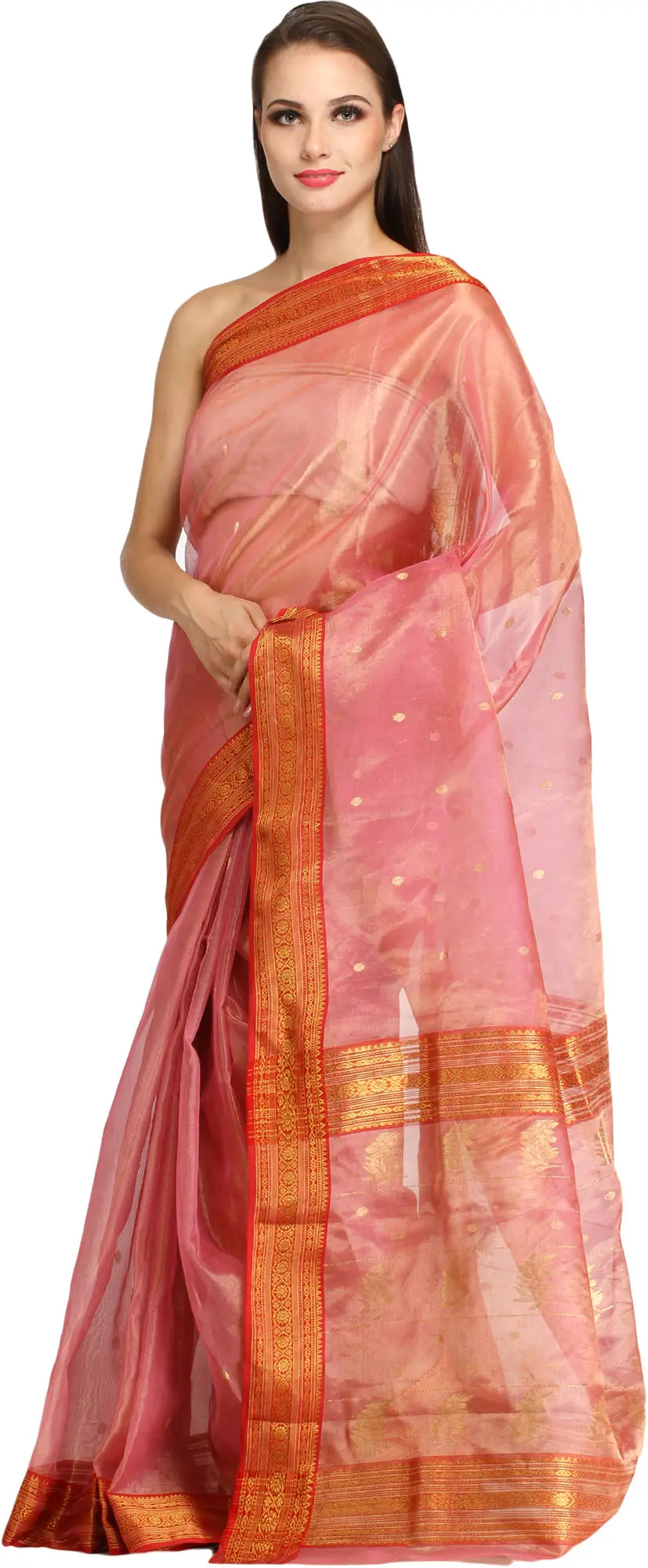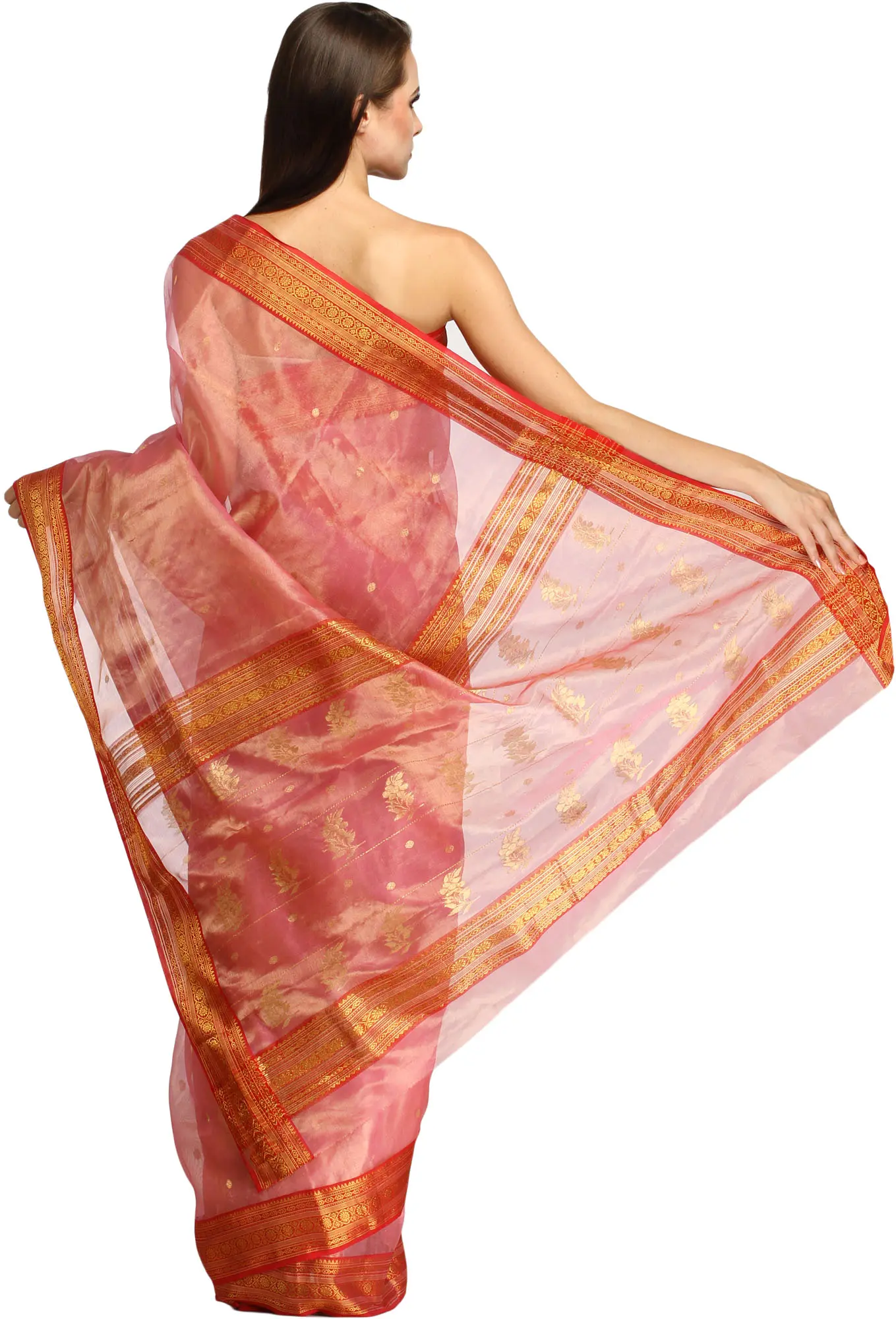 Orange-Pepper Chanderi Saree from Madhya Pradesh with Zari-Woven Border and Bootis