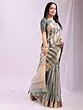 Sepia and Green Designer Saree with Sequins Embroidered as Flowers and Peacock Patch Border