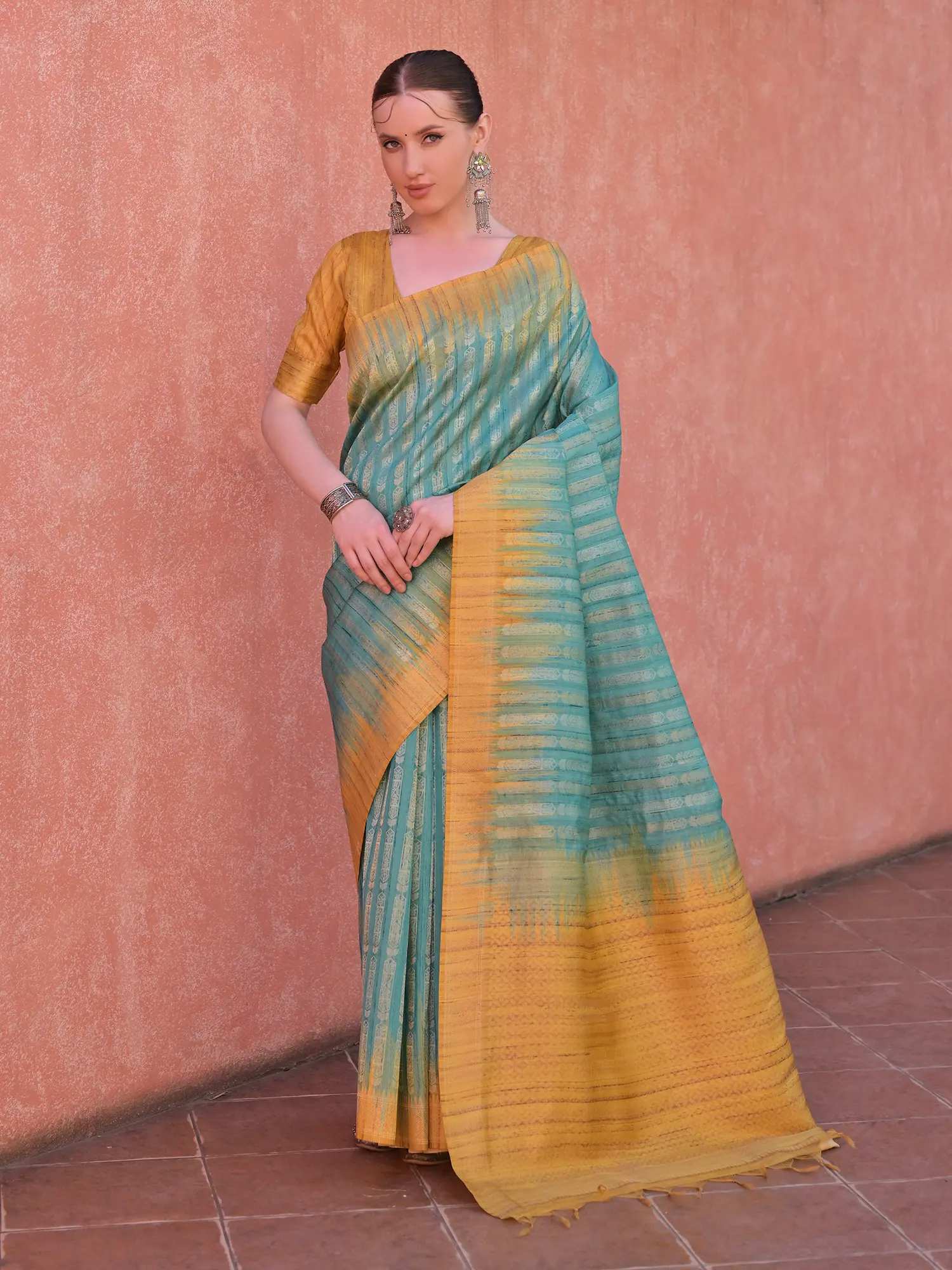 Methyl-Blue Art Silk Saree from Chennai with Brocaded Zari Bootis All-Over