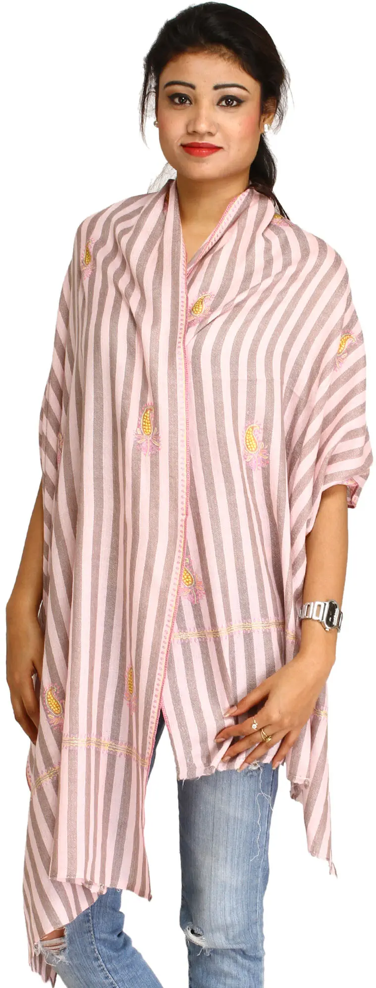 The Striped Stole from Kashmir is a work of art. The subtle stripes in this stole are created through self-weave, a skill that has been perfected in the region. Skilled artisans have hand-embroidered intricate paisley motifs using needlework. The color palette mirrors the serene landscapes of Kashmir. The combination of self-weave and hand-embroidery is a reflection of timeless craftsmanship, making this stole a harmonious blend of tradition and contemporary style.