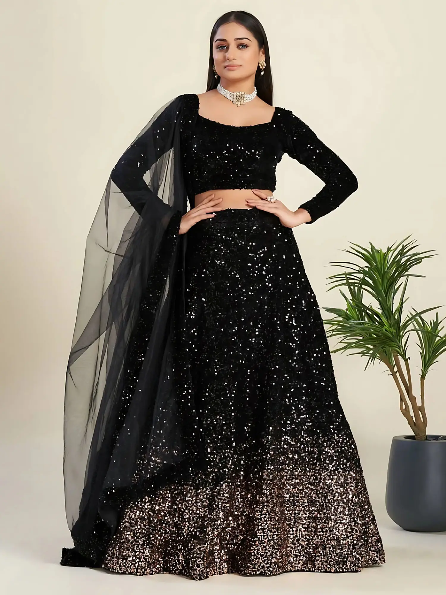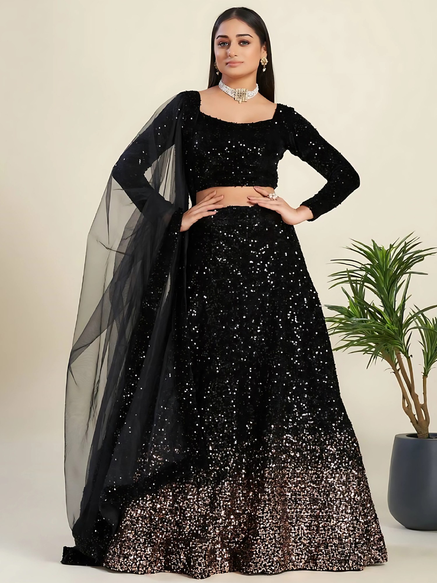 Velvet Stole from Amritsar with Hotfix Stone Work and Latkan Border