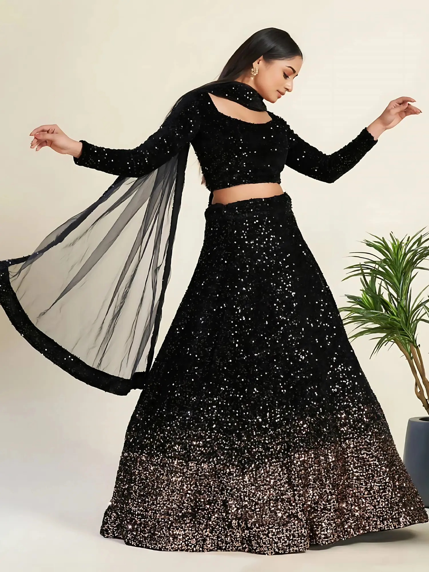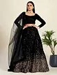 Bottle-Green Net Beads and Golden Thread Embroidery Lehenga Choli with Cutwork Dupatta