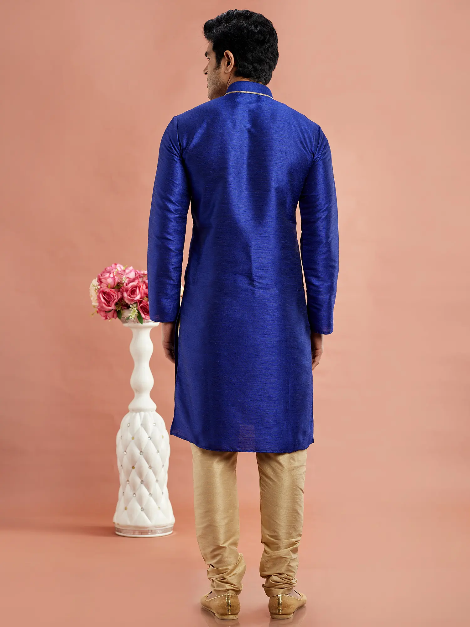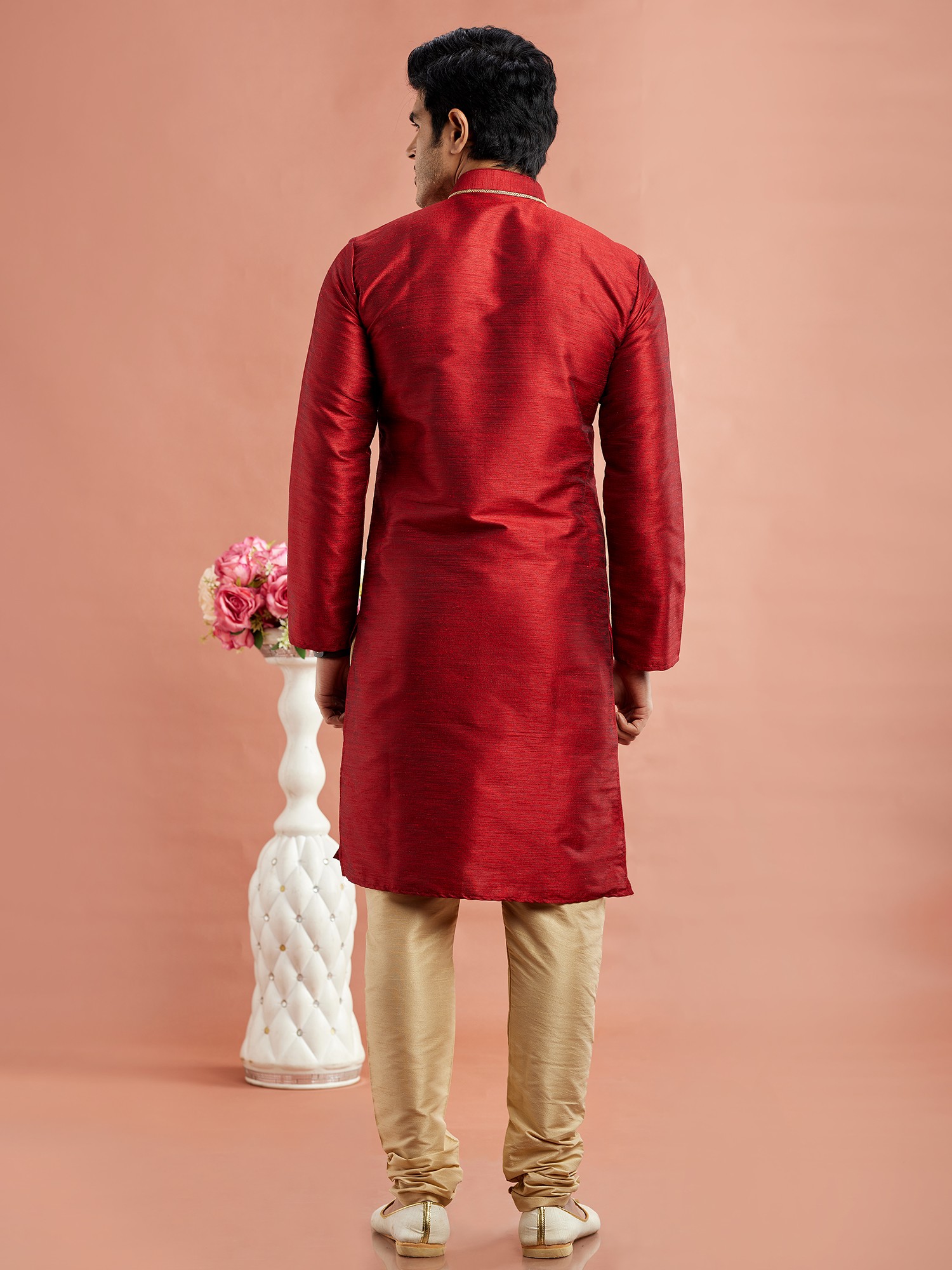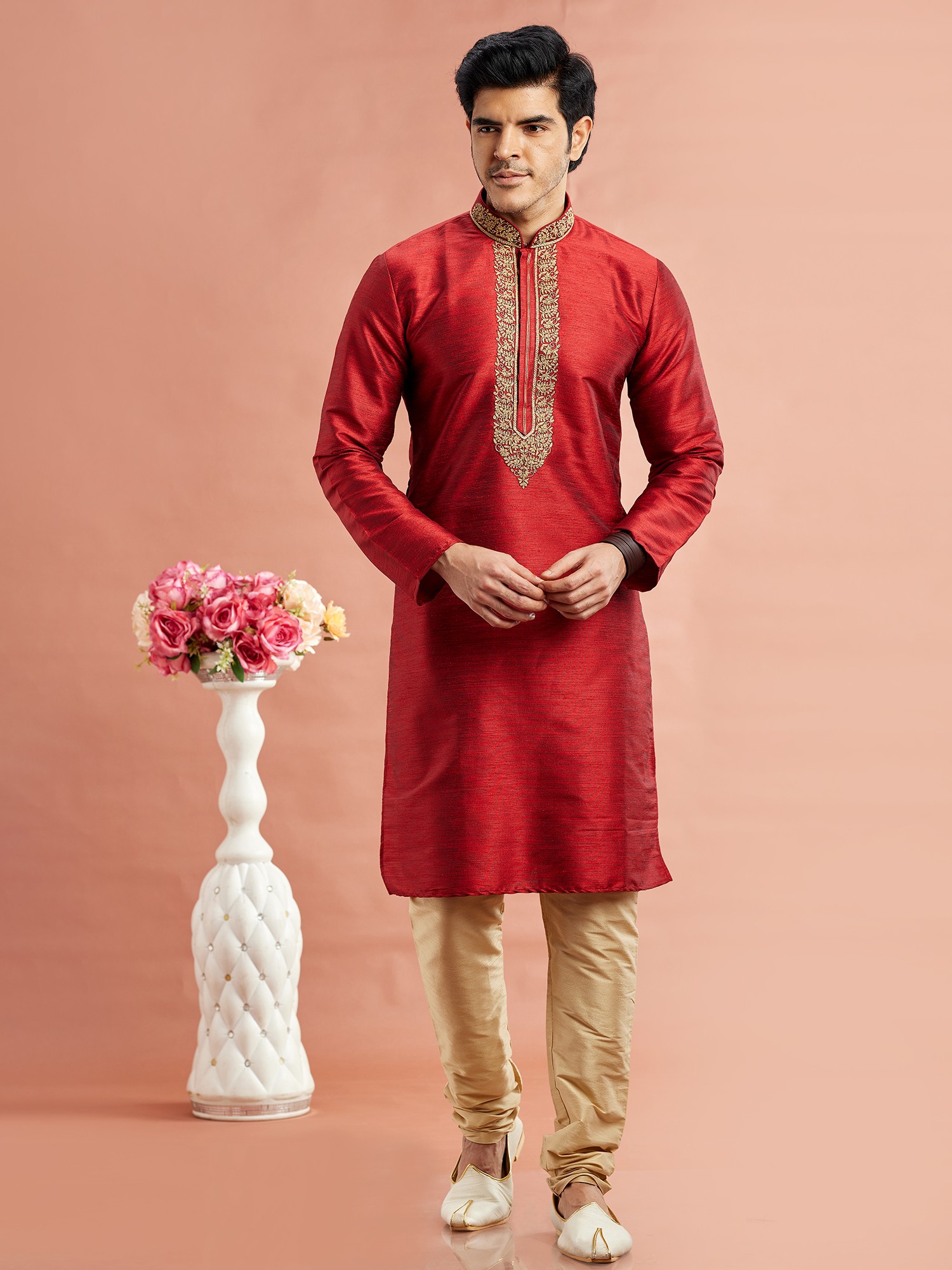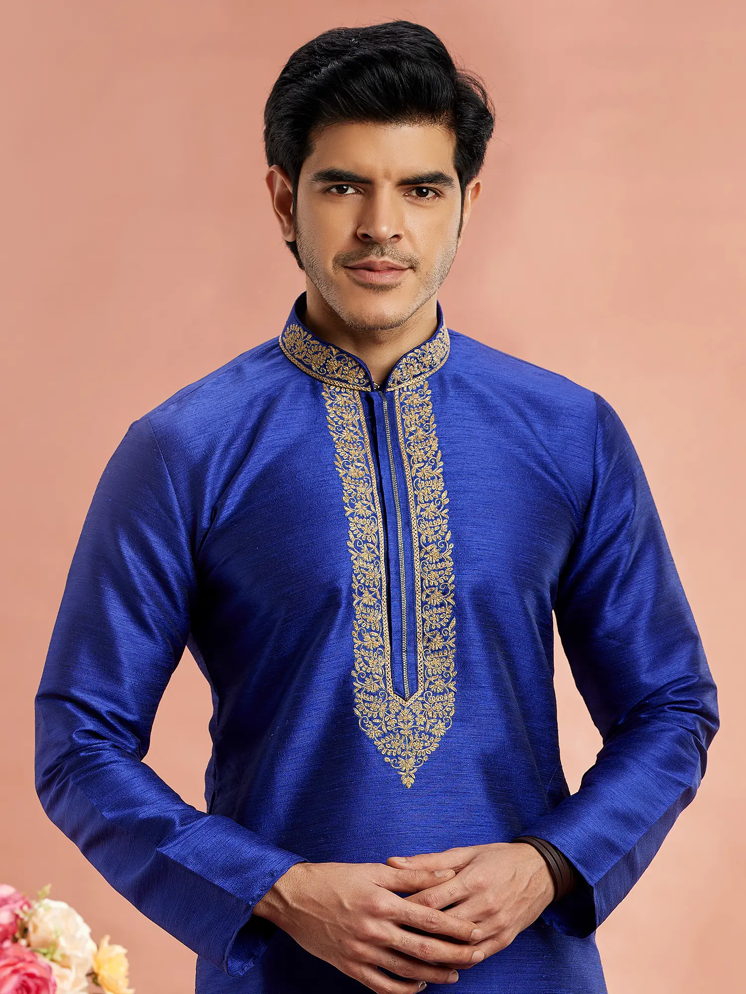 Jacquard Art Silk Embroidery Work On Neck Full Sleeve Kurta Pajama Set