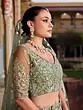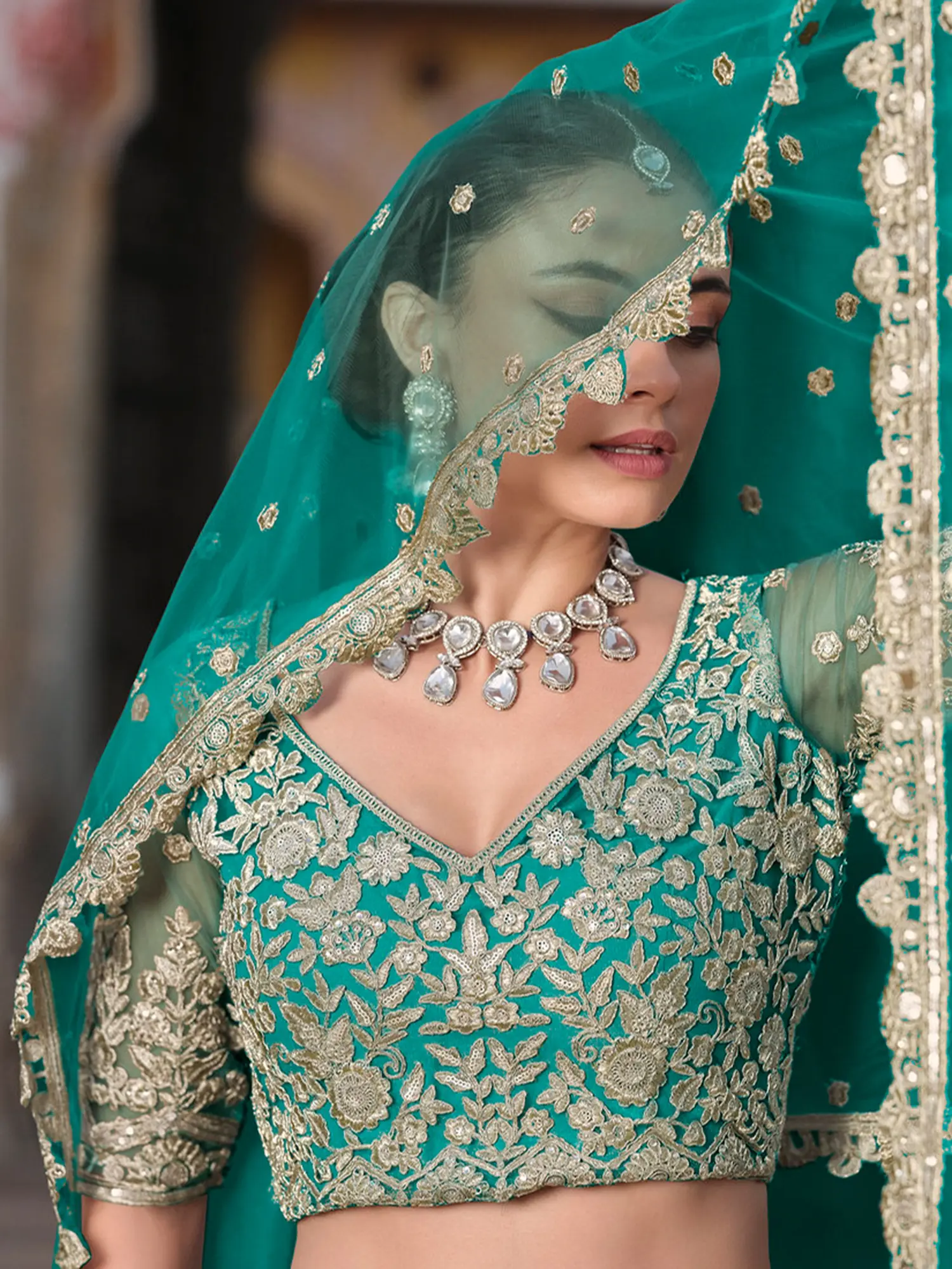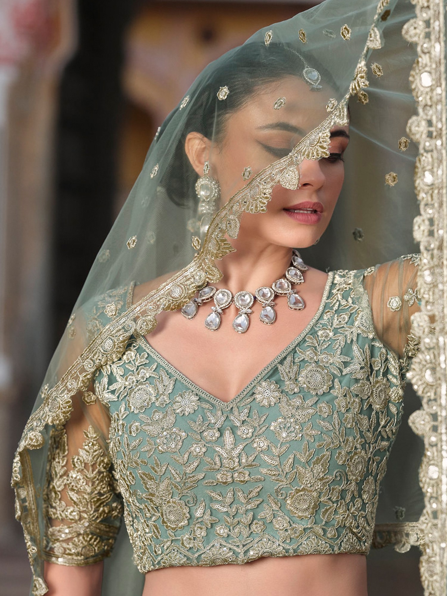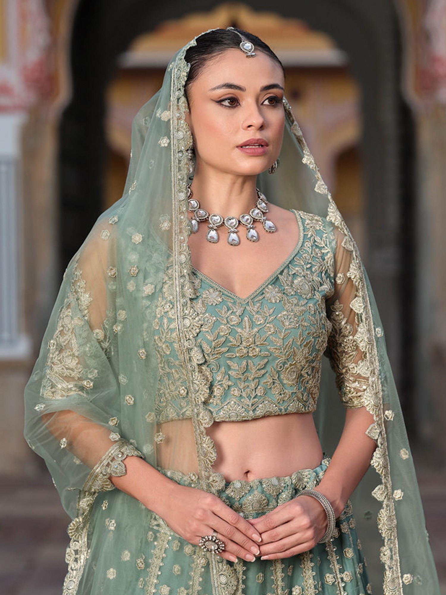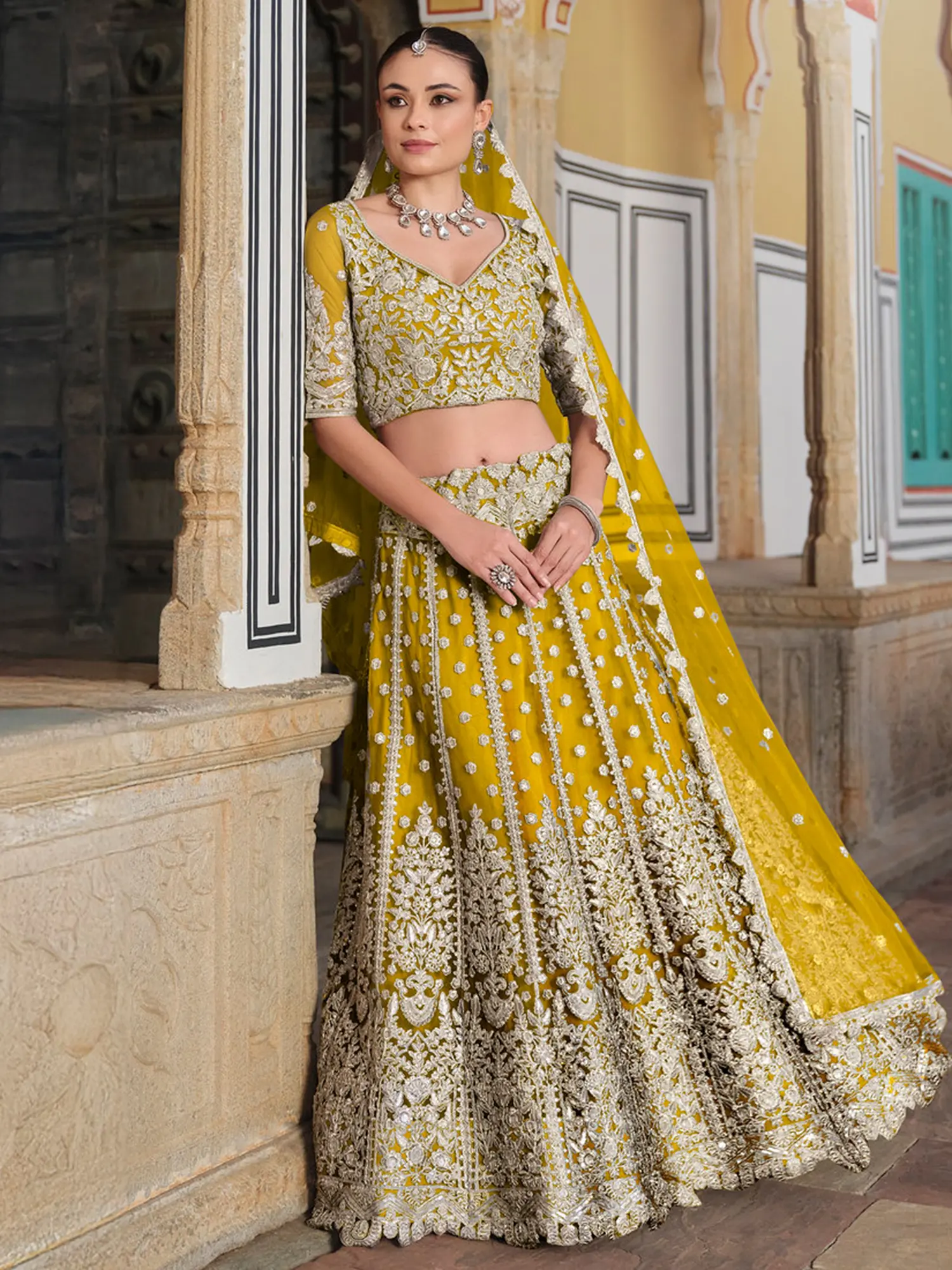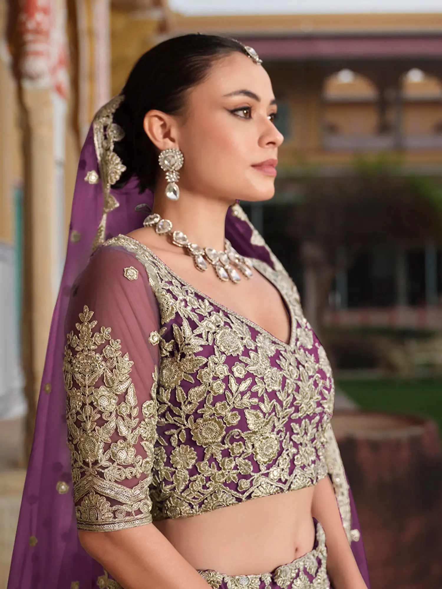 Red Soft Net Embroidered Lehenga Choli with Scalloped Dupatta