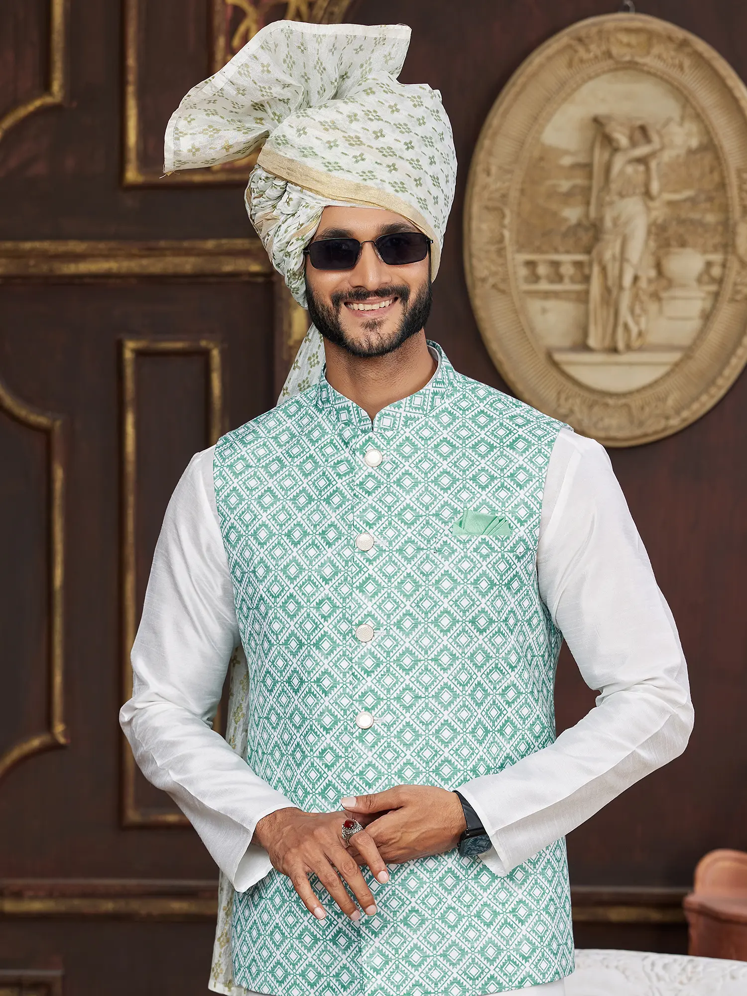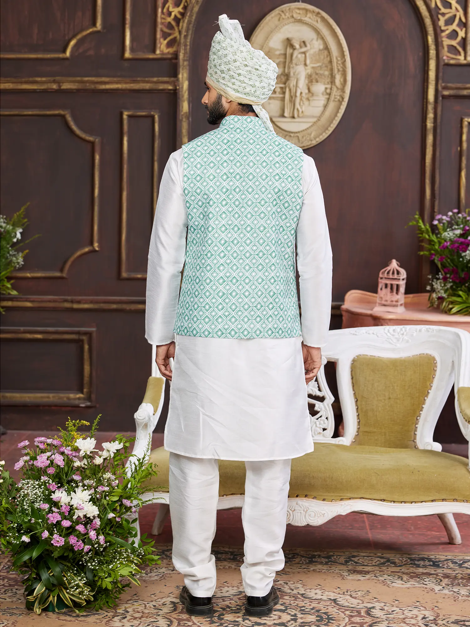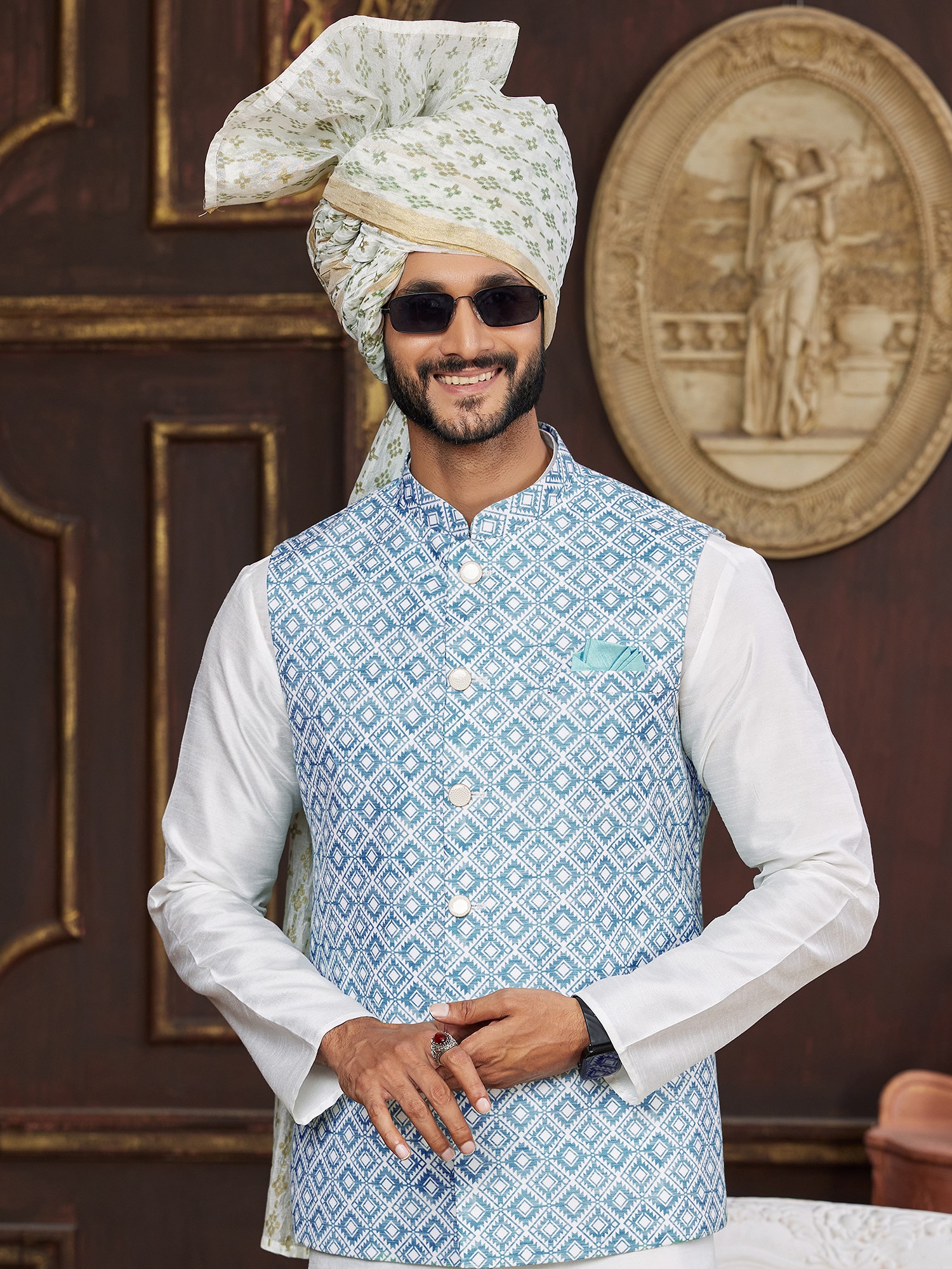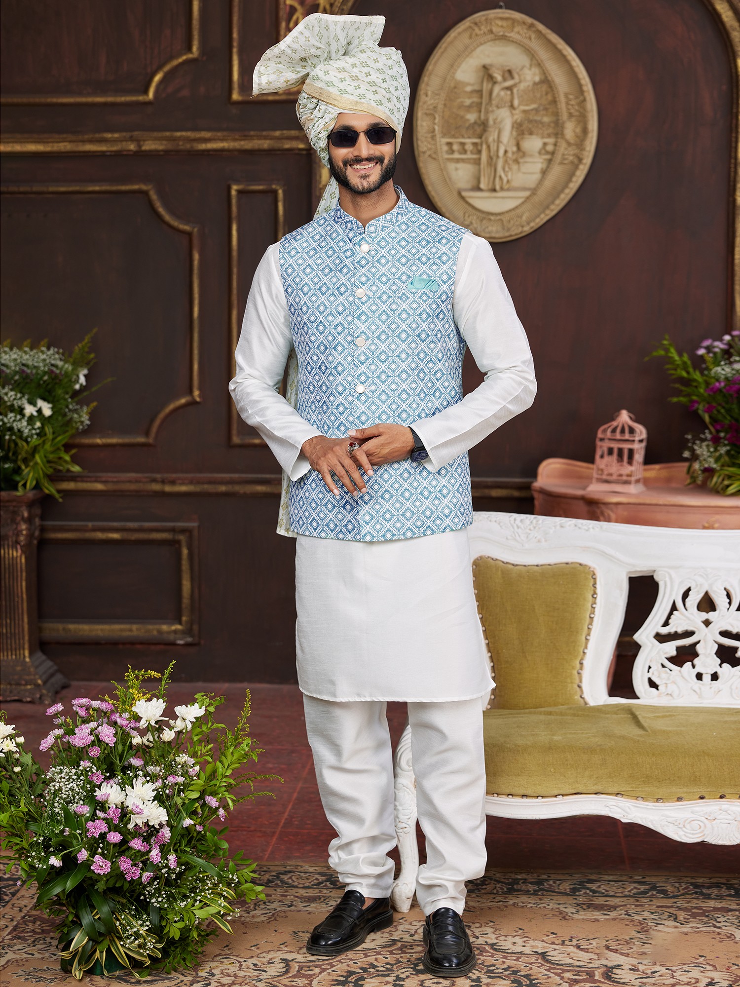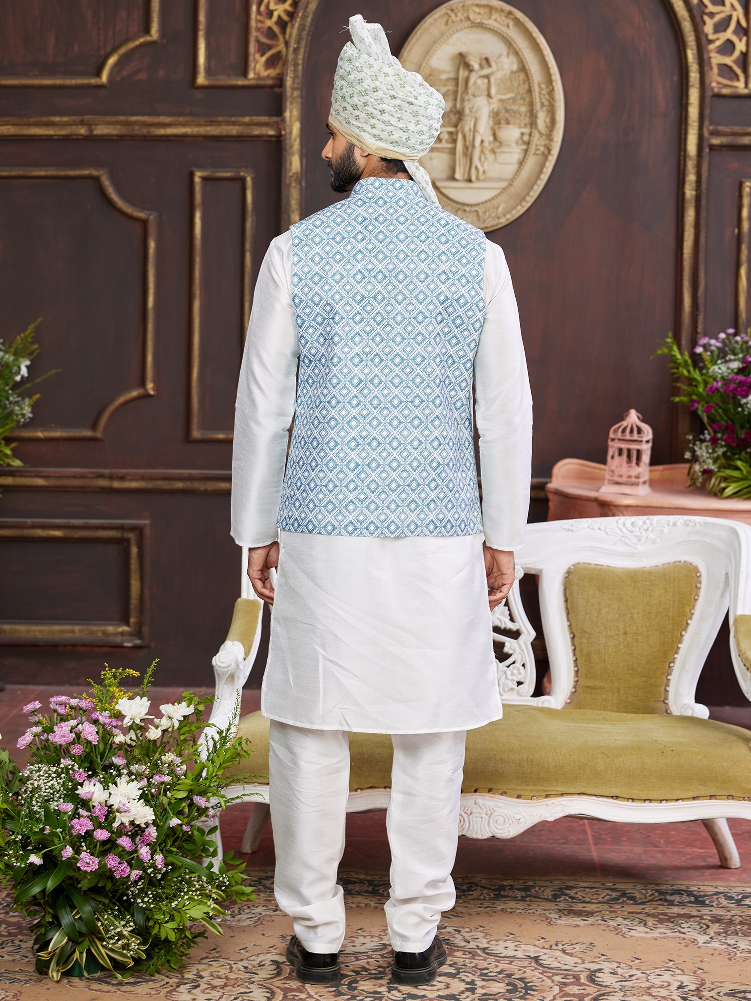 Cotton Blend Traditional Pathani Style Kurta Salwar Set