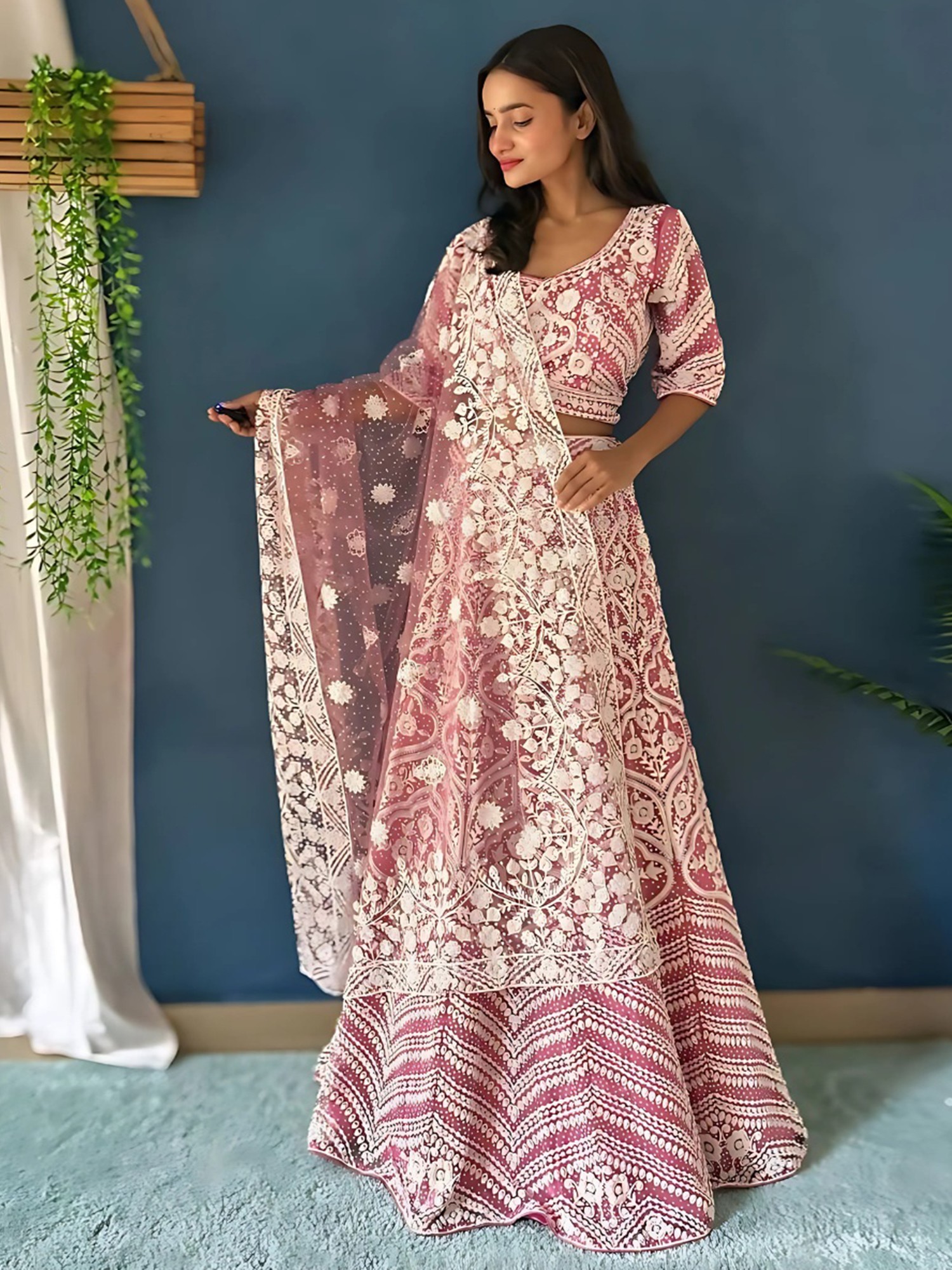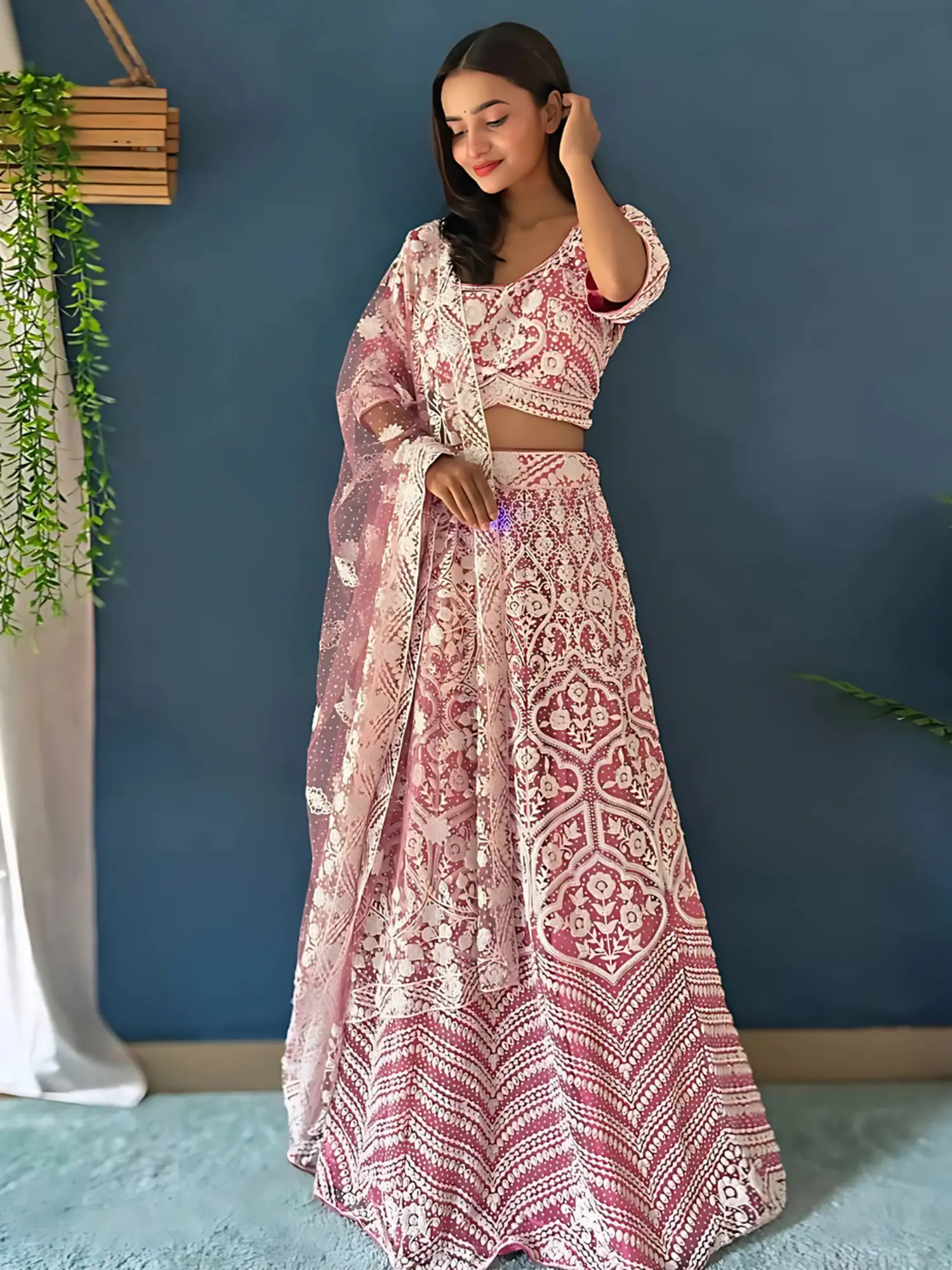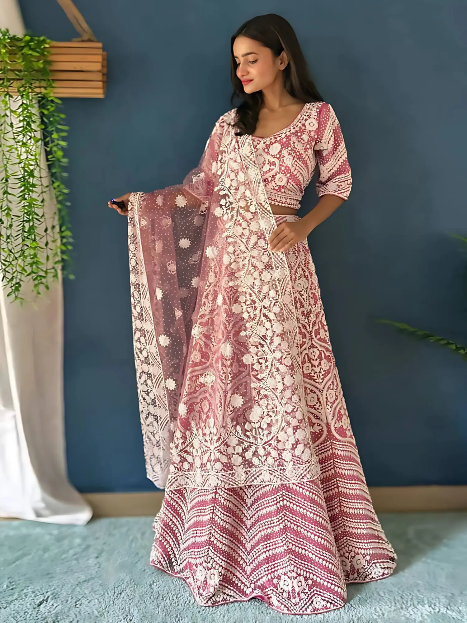 Net Heavy Thread Embroidery Work Stunning Festive Wear Lehenga Choli