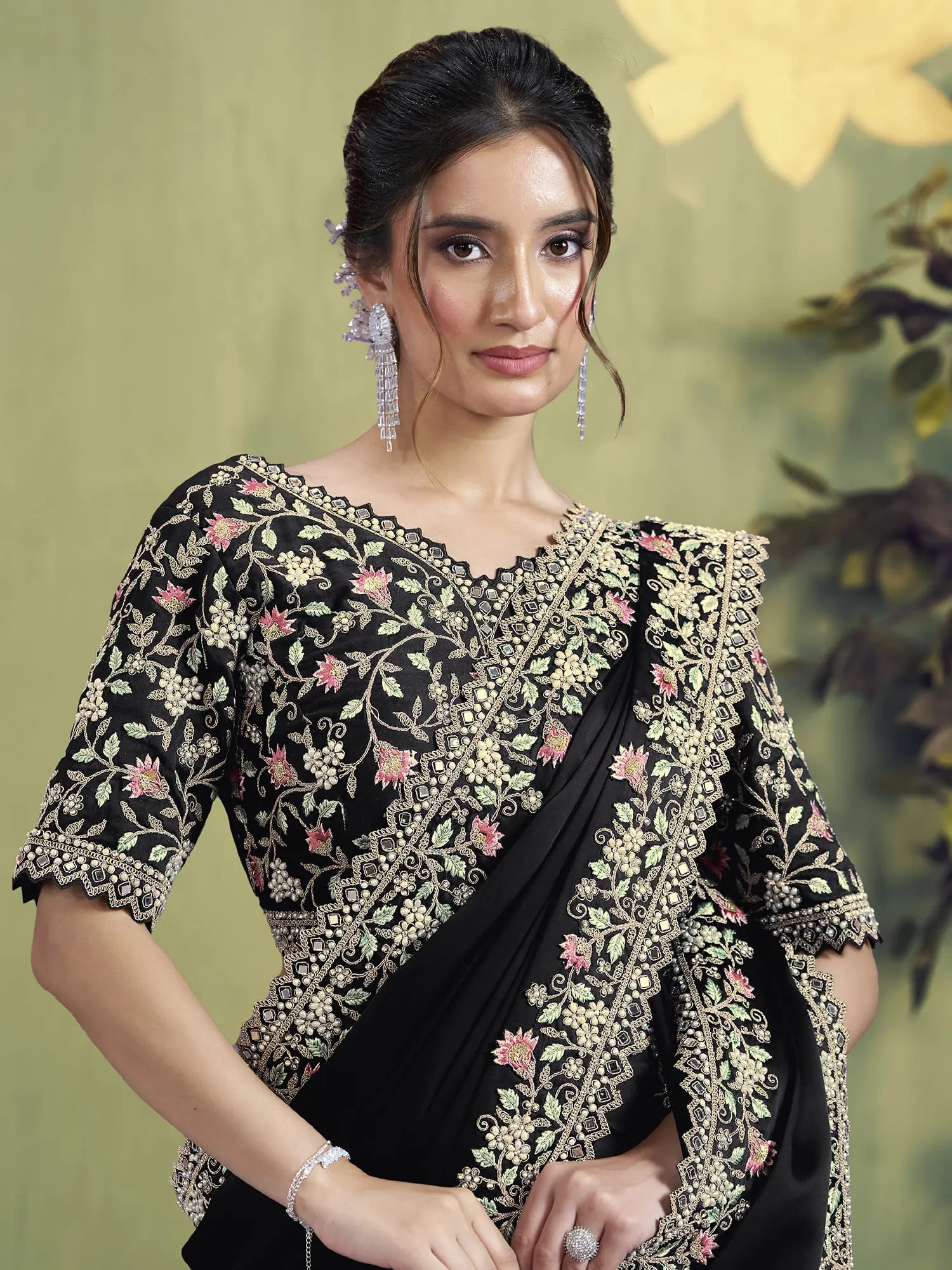 The saree itself carries echoes of a rich sartorial heritage, a tradition of celebrating beauty and elegance through intricate textiles. For centuries, silk has been a symbol of status and artistry, and the hand-embellishment techniques employed here are passed down through generations, preserving an ancient art form. Wearing this piece connects you to a lineage of queens and connoisseurs who understood the power of exquisite attire.